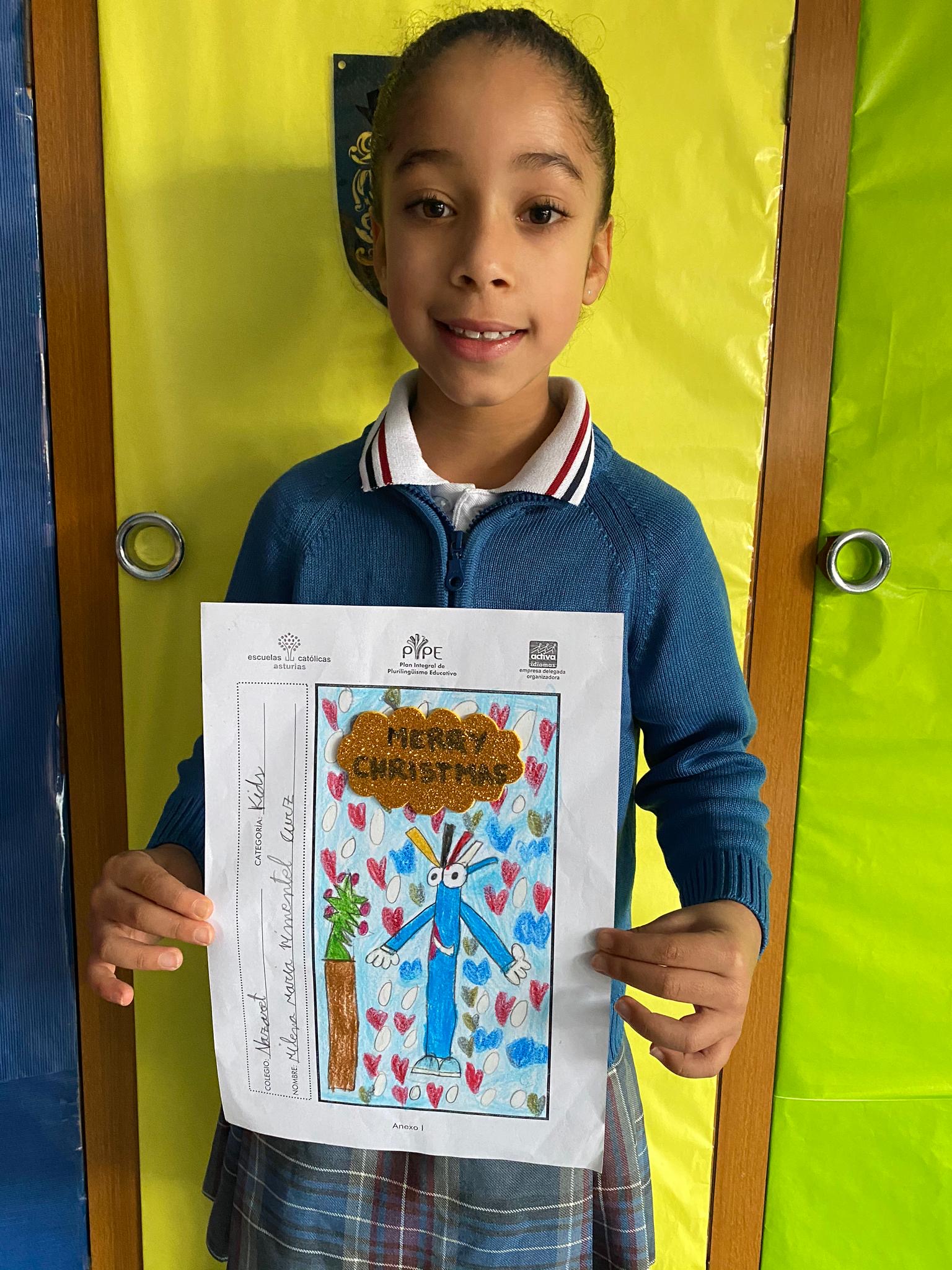 Nuestra alumna Milena Pimentel Cruz de 2ºB de E. Primaria ha ganado el PIPE Christmas Challenge 2019 de Asturias en la categoría KIDS. La entrega de premios tuvo lugar hoy en el Colegio Beata Imelda de La Felguera.