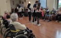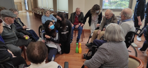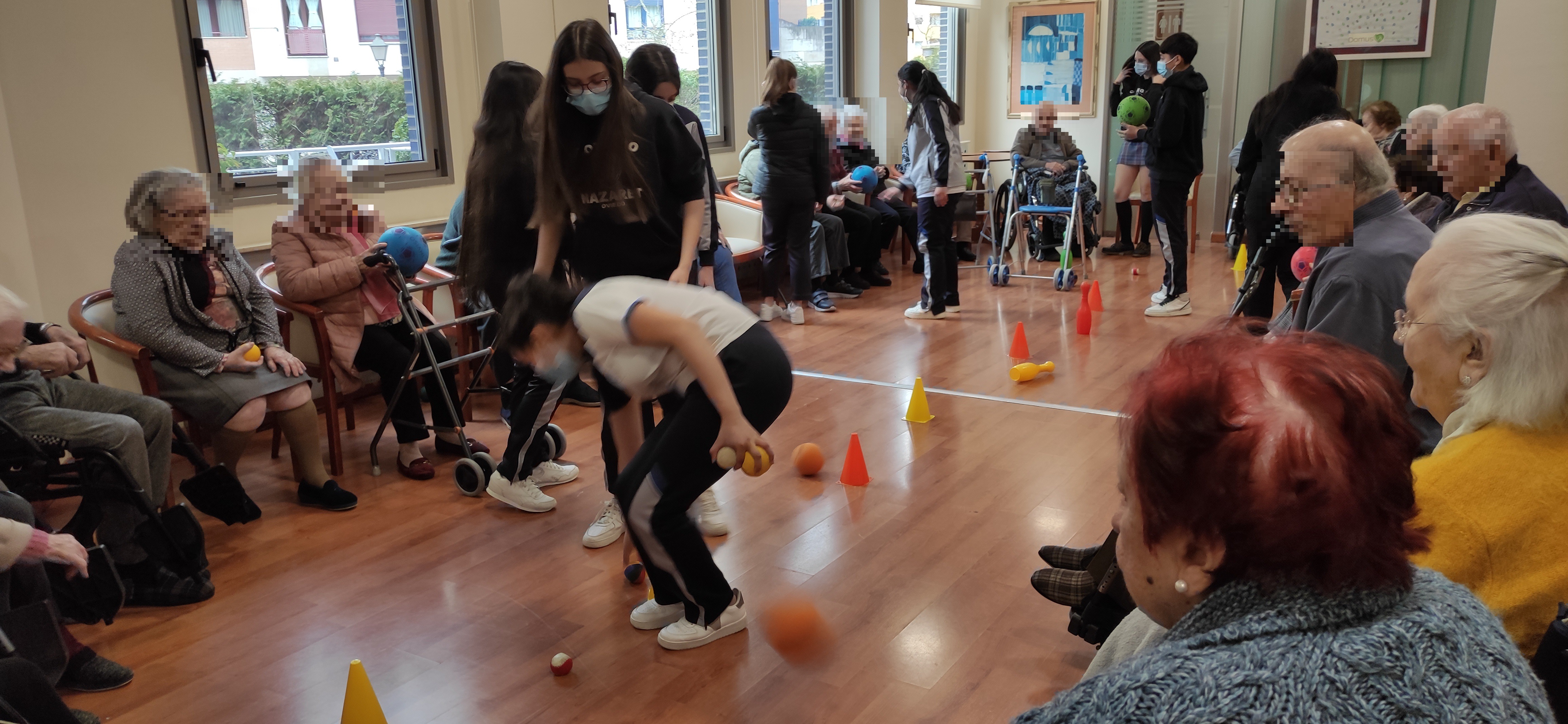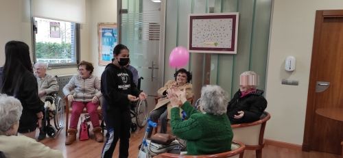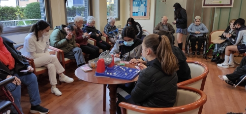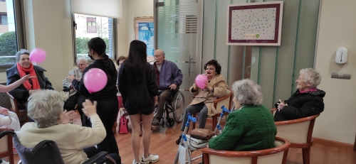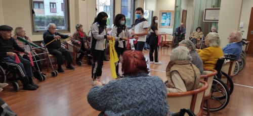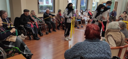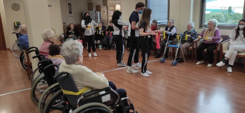 Los alumnos de 2º de ESO acudieron a la Residencia de Mayores DOMUS VI situada en la zona de La Florida para realizar una actividad física con las personas mayores. Aprovechando los contenidos de Educación Física vistos en el aula, los alumnos elaboraron varias sesiones de gimnasia para mayores con el objetivo de mejorar la calidad de vida de los internos, favoreciendo el intercambio generacional de experiencias y el aprendizaje entre jóvenes y mayores.