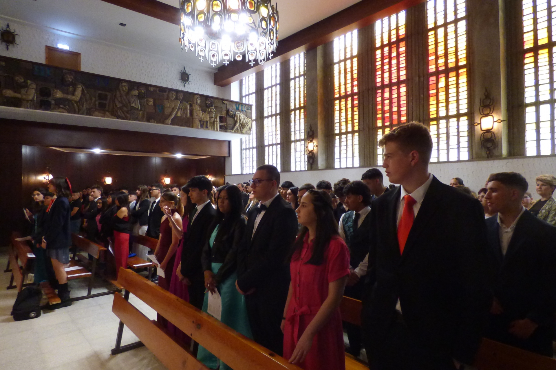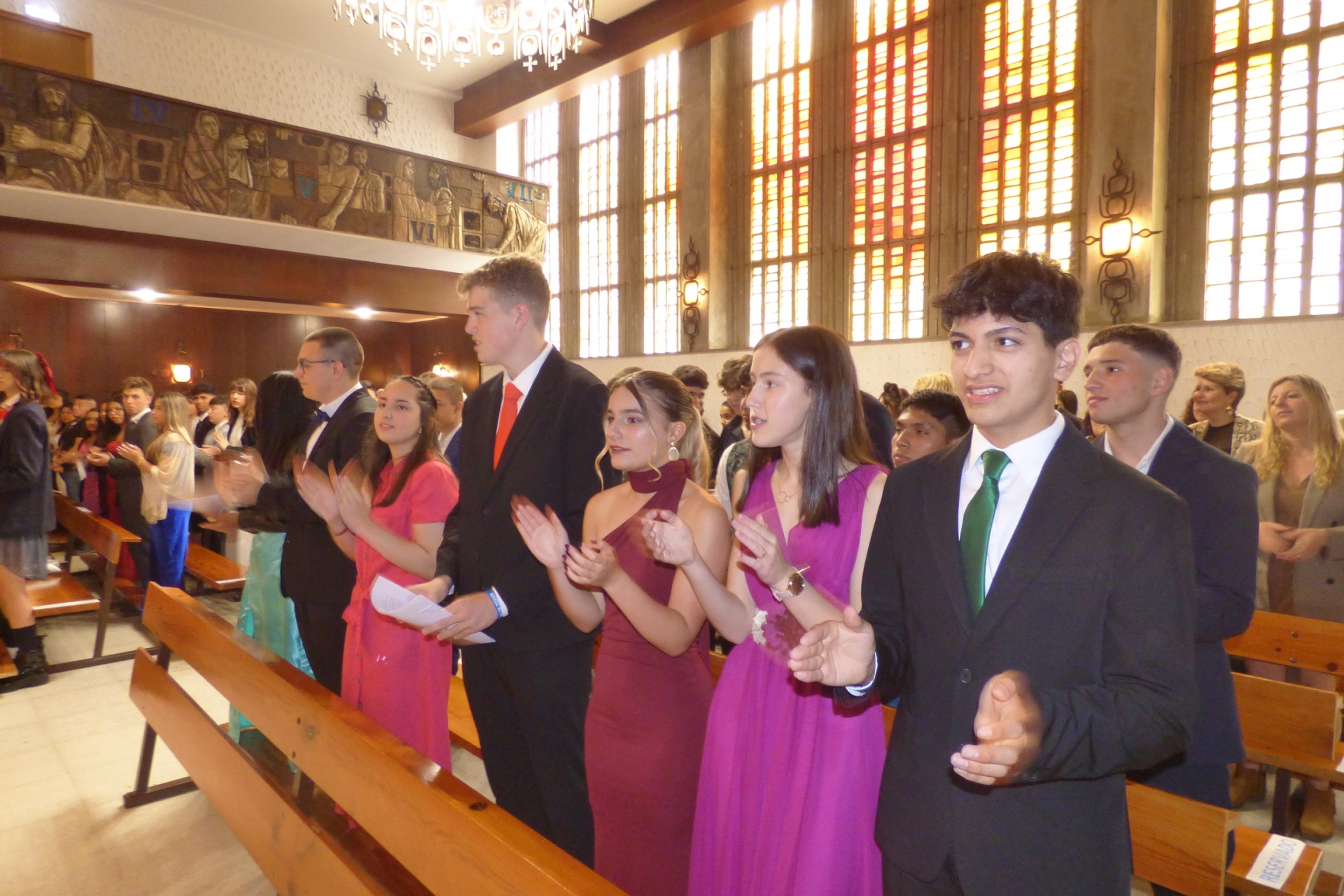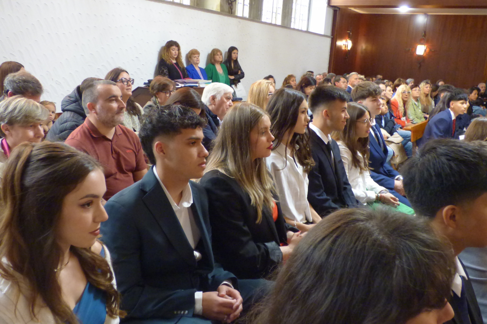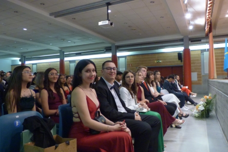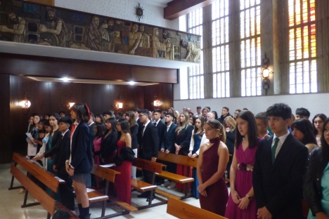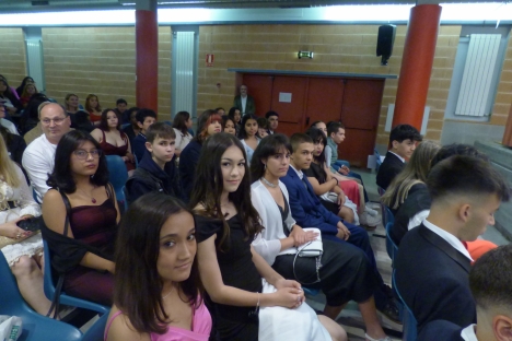 La celebración comenzó con una Eucaristía en la Capilla del Colegio y, a continuación, se llevó a cabo el Acto de Graduación en el salón de actos. En la capilla, disfrutamos de emocionantes momentos, como la interpretación a la guitarra de Sara y Pepe, su padre y profesor del cole, las ofrendas de los alumnos y la lectura compartida por María y Paula, su madre. Ya en el salón de actos, escuchamos las emotivas palabras de despedida y agradecimiento de alumnos, padres, tutores y dirección. Especial mención merece el profesional trabajo de los presentadores, Andrea y Diego, y el discurso de Brihan, Zahira y María, que arrancó risas y lágrimas entre el público. También pudimos admirar las interpretaciones al piano de Sara, Jorge y el dúo de las dos Marías, la alumna de 4º y nuestra directora académica, el divertido mega-mix de bailes y el vídeo donde se aprecia el paso de nuestros chicos y chicas por el colegio, desde E. Infantil hasta el viaje de estudios. Junto con la imposición de becas, Manuela, nuestra directora titular, entregó a los graduados un detalle del colegio en el que se podía leer el pensamiento que flotaba en el ambiente: "Has logrado una meta, ahora conquista tu sueño".