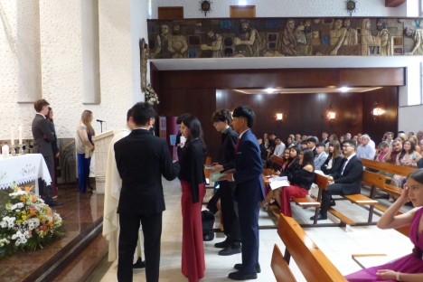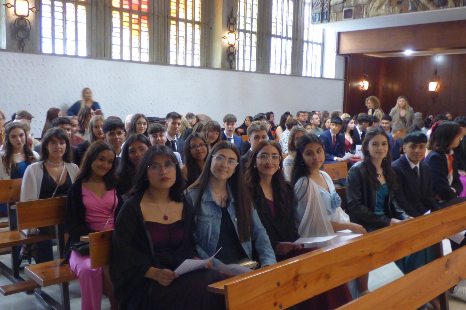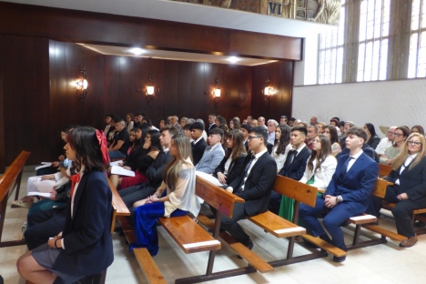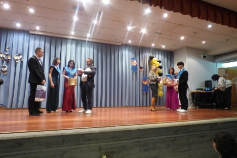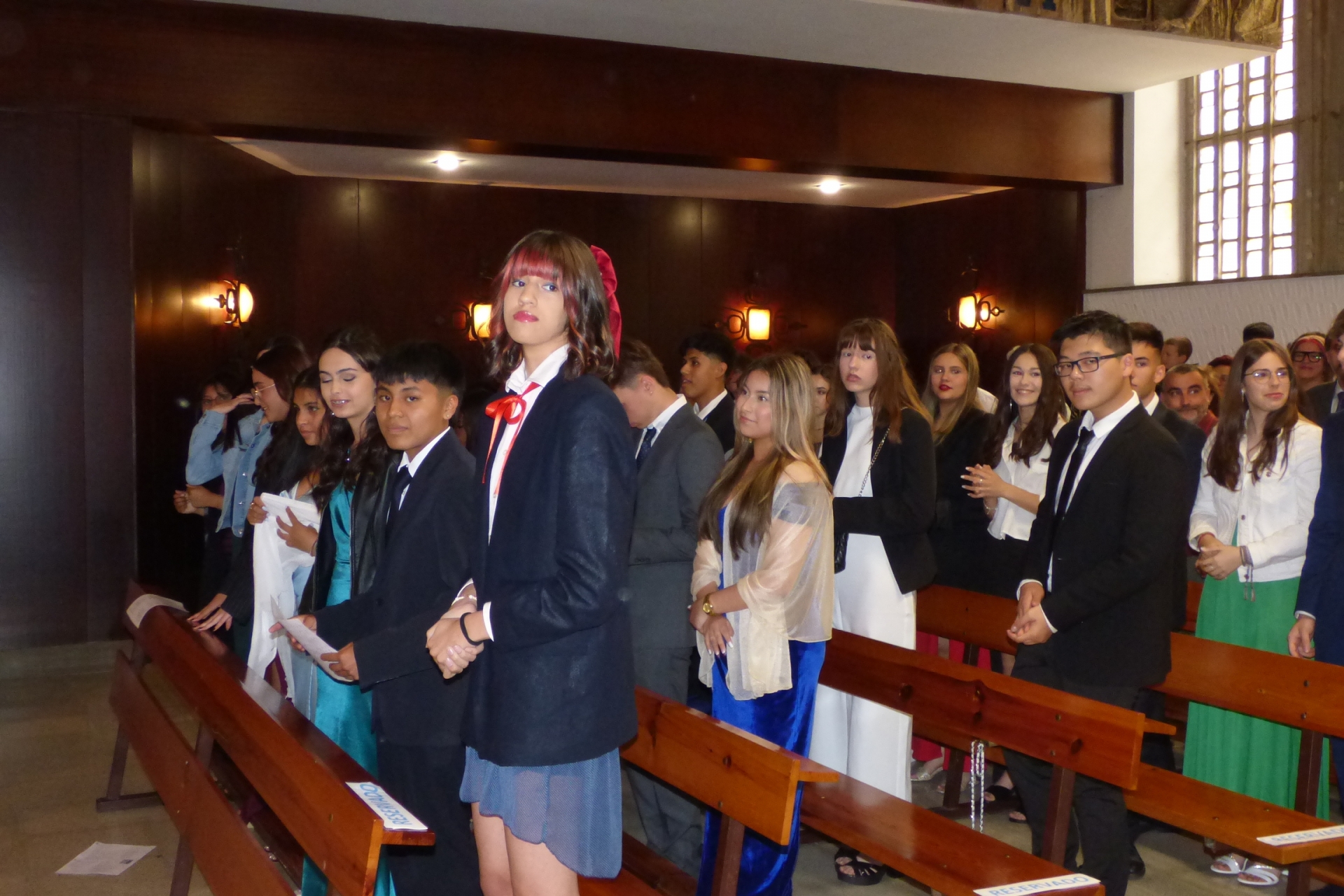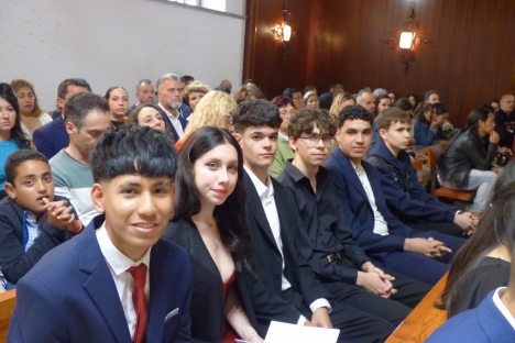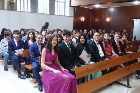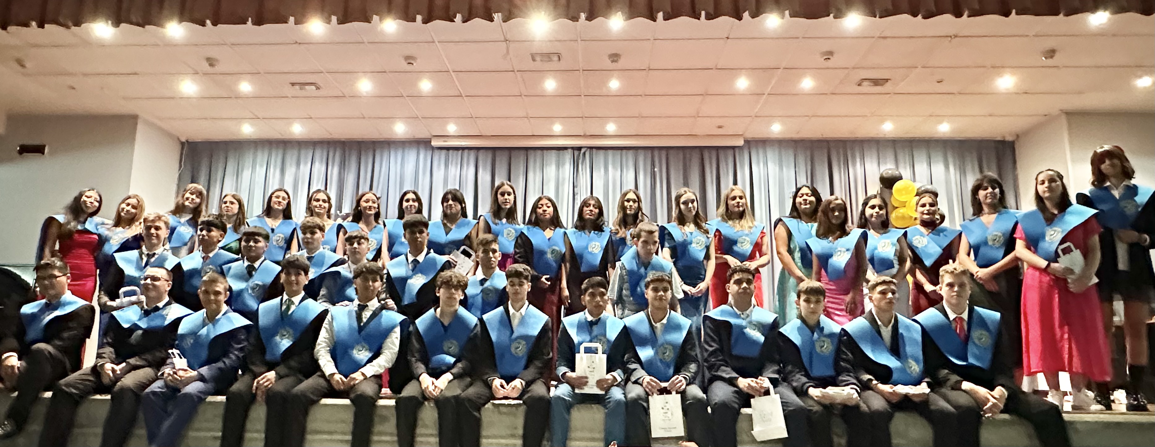 La celebración comenzó con una Eucaristía en la Capilla del Colegio y, a continuación, se llevó a cabo el Acto de Graduación en el salón de actos. En la capilla, disfrutamos de emocionantes momentos, como la interpretación a la guitarra de Sara y Pepe, su padre y profesor del cole, las ofrendas de los alumnos y la lectura compartida por María y Paula, su madre. Ya en el salón de actos, escuchamos las emotivas palabras de despedida y agradecimiento de alumnos, padres, tutores y dirección. Especial mención merece el profesional trabajo de los presentadores, Andrea y Diego, y el discurso de Brihan, Zahira y María, que arrancó risas y lágrimas entre el público. También pudimos admirar las interpretaciones al piano de Sara, Jorge y el dúo de las dos Marías, la alumna de 4º y nuestra directora académica, el divertido mega-mix de bailes y el vídeo donde se aprecia el paso de nuestros chicos y chicas por el colegio, desde E. Infantil hasta el viaje de estudios. Junto con la imposición de becas, Manuela, nuestra directora titular, entregó a los graduados un detalle del colegio en el que se podía leer el pensamiento que flotaba en el ambiente: "Has logrado una meta, ahora conquista tu sueño".