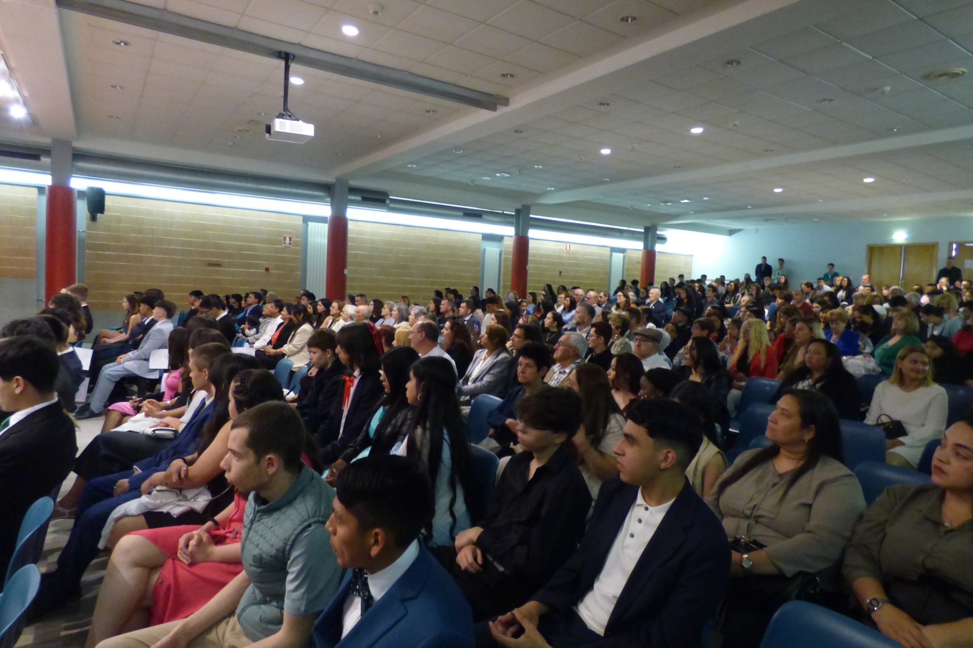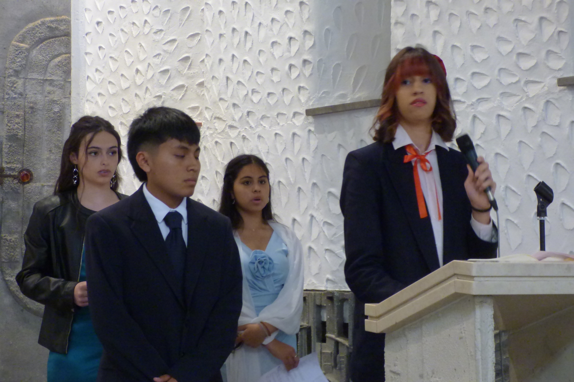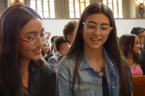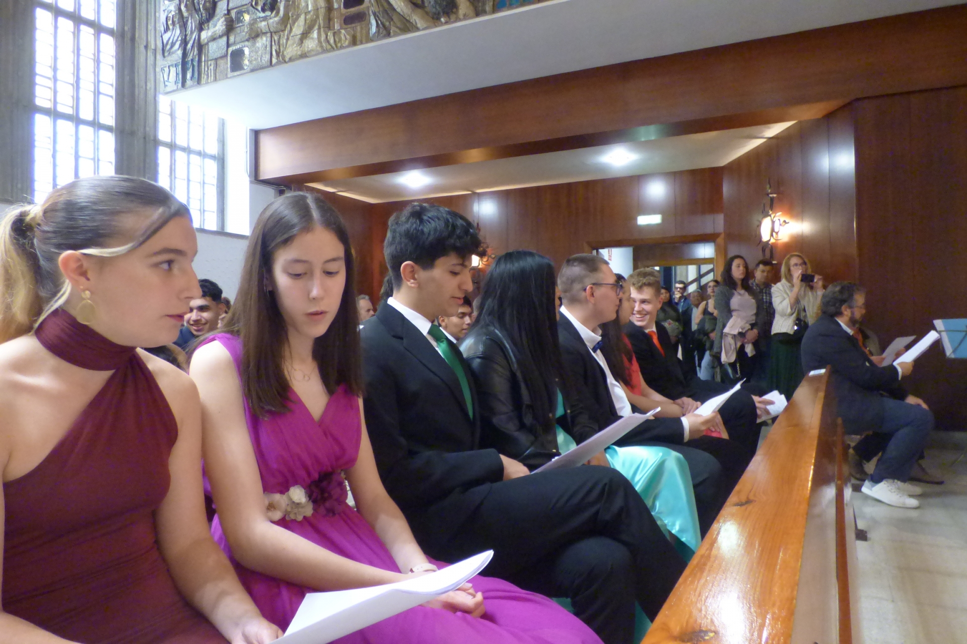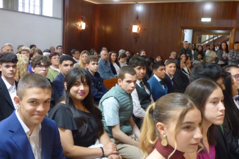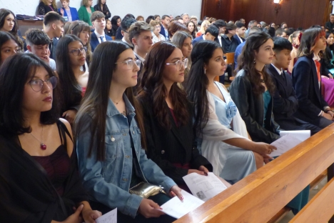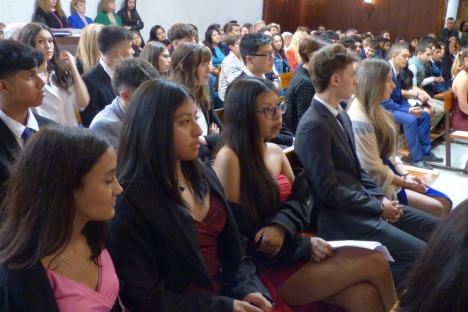 La celebración comenzó con una Eucaristía en la Capilla del Colegio y, a continuación, se llevó a cabo el Acto de Graduación en el salón de actos. En la capilla, disfrutamos de emocionantes momentos, como la interpretación a la guitarra de Sara y Pepe, su padre y profesor del cole, las ofrendas de los alumnos y la lectura compartida por María y Paula, su madre. Ya en el salón de actos, escuchamos las emotivas palabras de despedida y agradecimiento de alumnos, padres, tutores y dirección. Especial mención merece el profesional trabajo de los presentadores, Andrea y Diego, y el discurso de Brihan, Zahira y María, que arrancó risas y lágrimas entre el público. También pudimos admirar las interpretaciones al piano de Sara, Jorge y el dúo de las dos Marías, la alumna de 4º y nuestra directora académica, el divertido mega-mix de bailes y el vídeo donde se aprecia el paso de nuestros chicos y chicas por el colegio, desde E. Infantil hasta el viaje de estudios. Junto con la imposición de becas, Manuela, nuestra directora titular, entregó a los graduados un detalle del colegio en el que se podía leer el pensamiento que flotaba en el ambiente: "Has logrado una meta, ahora conquista tu sueño".