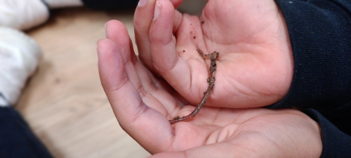 En esta ocasión hemos tenido la ocasión de verlas cavar galerías e incluso las hemos tocado con nuestras manos. Para terminar, todas ellas han sido depositadas en nuestra compostera para que, con su trabajo, podamos obtener un compost de buena calidad.