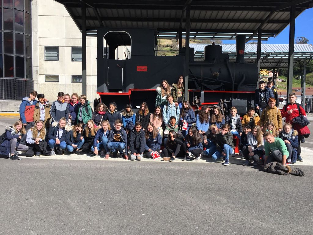 En su cuarto día con nosotros, el grupo de alumnos de intercambio y sus compañeros de 2º ESO compartieron las dos primeras horas de clase en el colegio (Educación Física e Inglés). Desde allí, salieron hacia El Entrego, para visitar el MUMI (Museo de la Minería y la Industria). A continuación, celebraron con una comida todos juntos y acompañaron a nuestros amigos alemanes de compras por Intu Asturias.