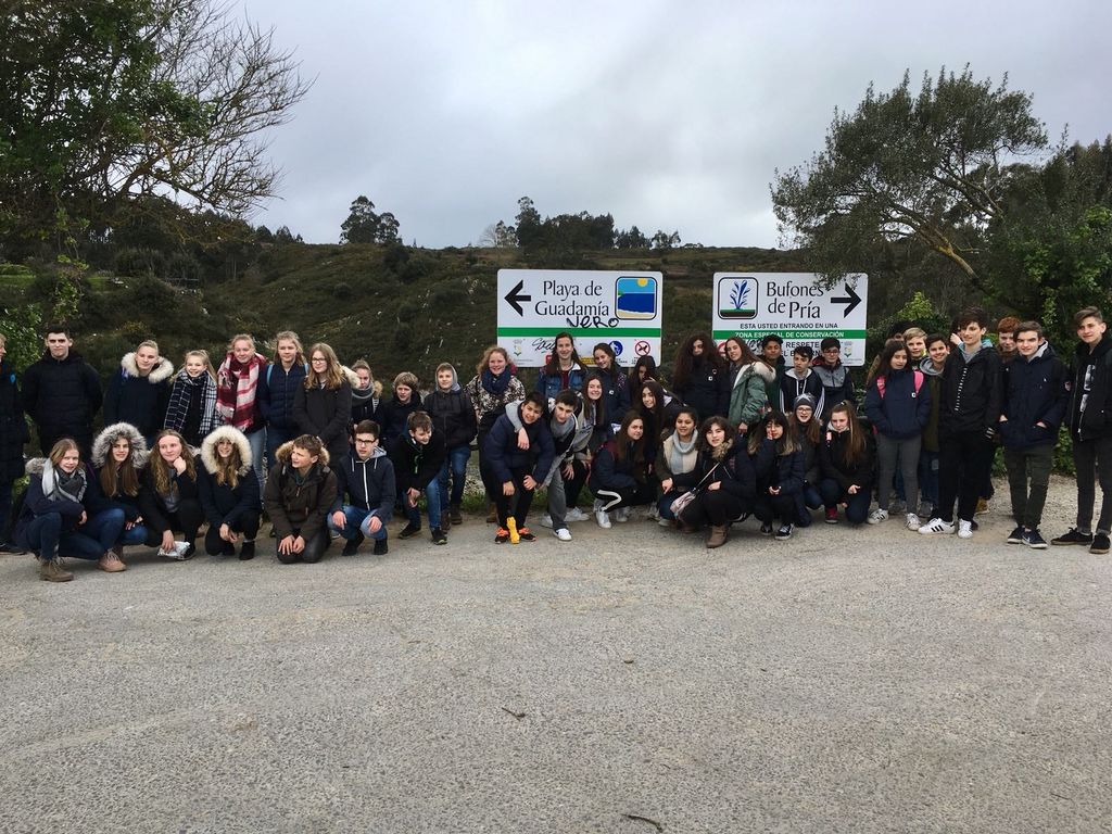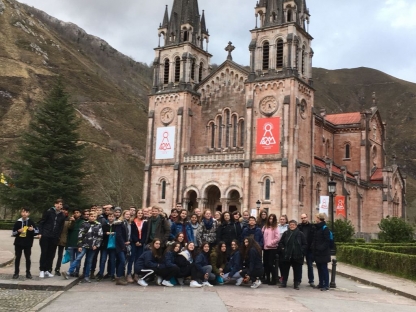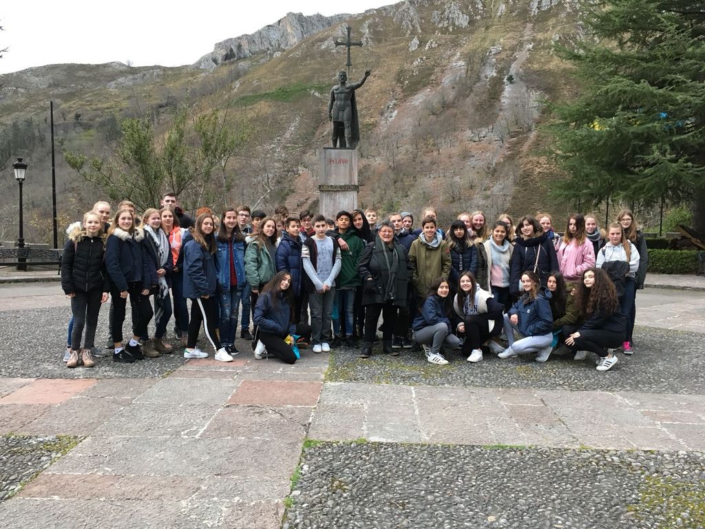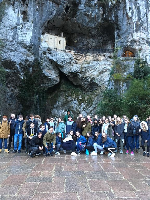 En su segundo día en Asturias, nuestros alumnos que participan en el Intercambio y sus compañeros alemanes disfrutaron, junto a sus profesores, del impresionante paisaje de tres lugares: en primer lugar, visitaron la cueva El Soplao, en Cantabria; después comieron en Llames de Pría y recorrieron la costa de los bufones; por último, visitaron la basílica de Covadonga y tuvieron el privilegio de escuchar a la escolanía, para después ver a Nuestra Santina en su santa cueva.