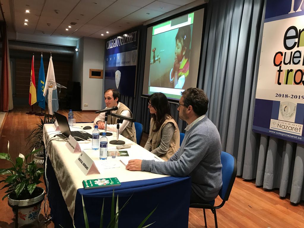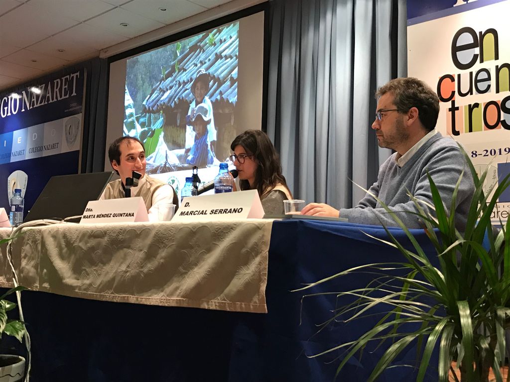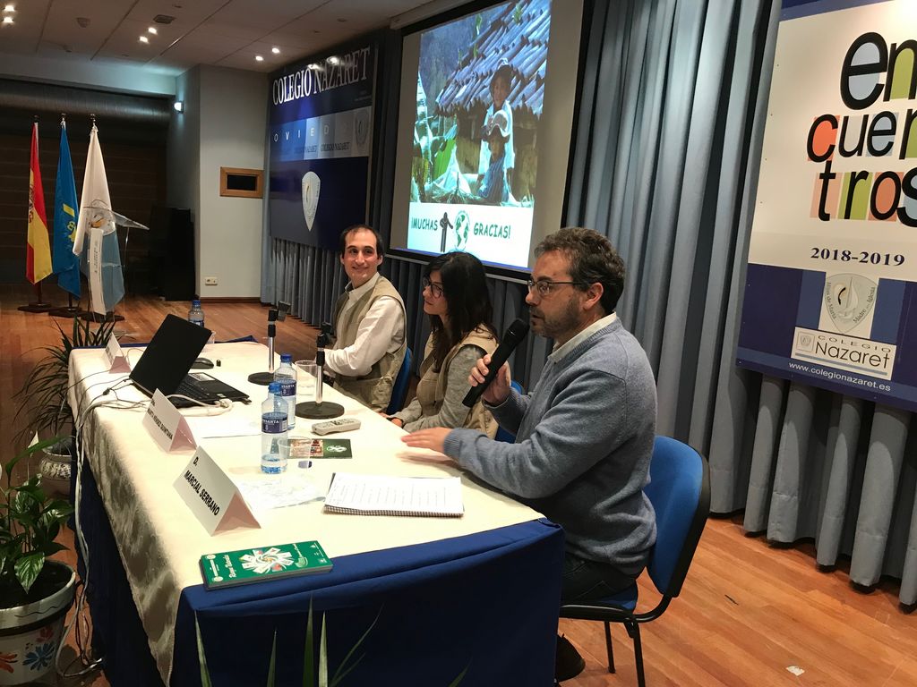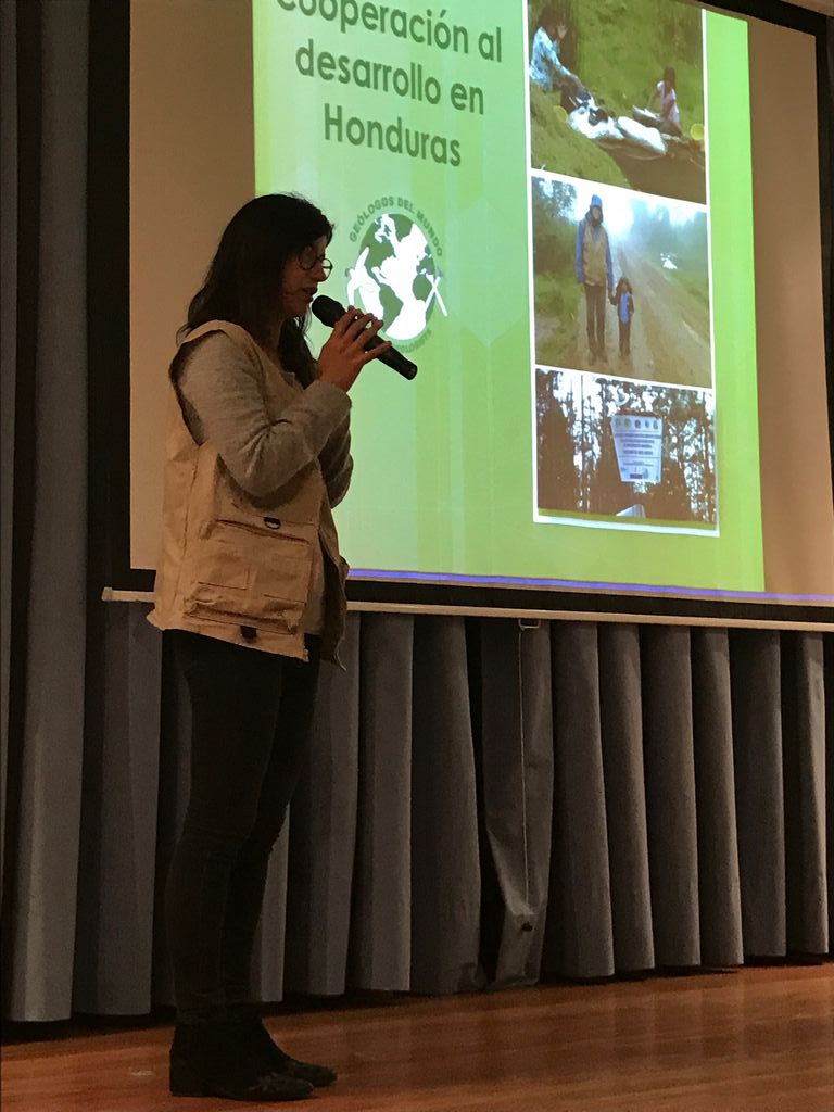 La segunda charla de hoy tuvo como protagonista a la ONGD Geólogos del mundo. Los geólogos Marta Méndez Quintana y José Luis Díaz Aráez explicaron las labores profesionales de un geólogo, la función de Geólogos del mundo y las actuaciones en Honduras. Aunque la ONGD actúa en varias naciones, la rama asturiana se centra en dicho país centroamericano. Expusieron imágenes de los pueblos donde trabajaron, sus gentes, situación vital y necesidades. Los proyectos realizados en potabilización, construcción de depósitos de agua, saneamiento, letrinas, formación a los habitantes mejoraron notablemente las condiciones de salud y comodidad de esas comunidades rurales hondureñas.