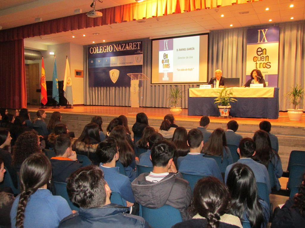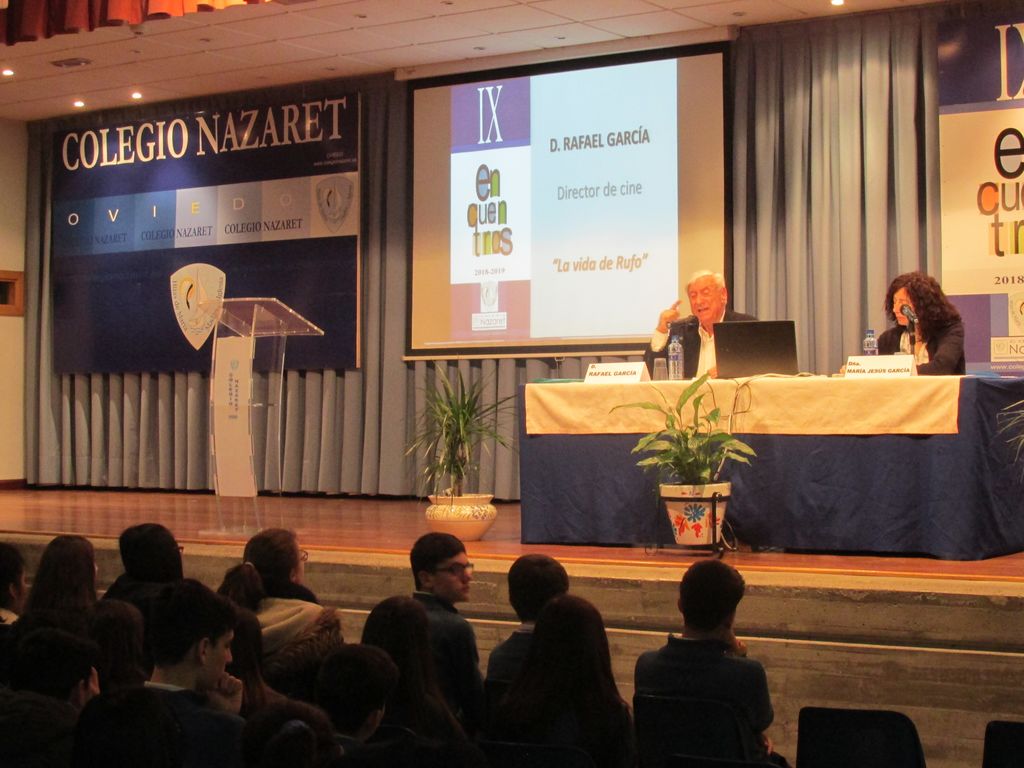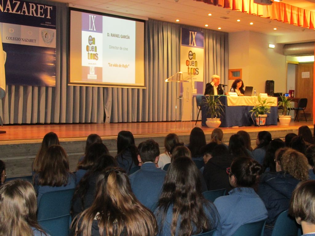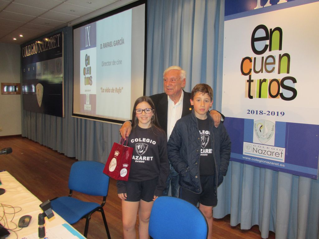 Tras la charla, los chicos le hicieron un montón de preguntas sobre la película y su actual ocupación como director de cine. Y para finalizar, dos actores de Buscando a Rufo, alumnos del colegio, Katya y Pablo, le agradecieron con un obsequio, su participación en estos Encuentros.