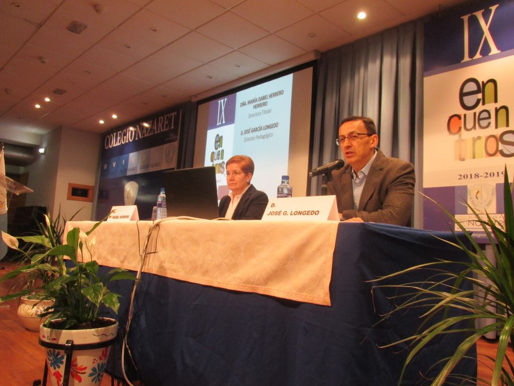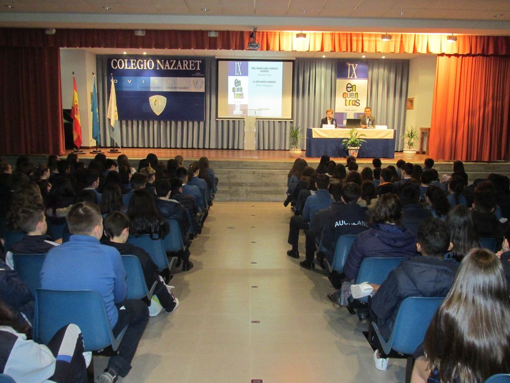Para inaugurar los ENCUENTROS de este año, contamos con la presencia de Dña. Mª Isabel Herrero Herrero, Directora Titular de nuestro colegio y D. José García Longedo, Director Pedagógico, quienes se dirigieron a los alumnos de Secundaria animándolos a aprovechar al máximo esta interesante experiencia, que ya está en su novena edición, agradeciendo su trabajo y excelente actitud, así como la dedicación del profesorado, la atención de las familias, la financiación de la AMPA y, sobre todo, la colaboración desinteresada de todos y cada uno de los ponentes (ya más de ciento veinte) que han participado en este programa.