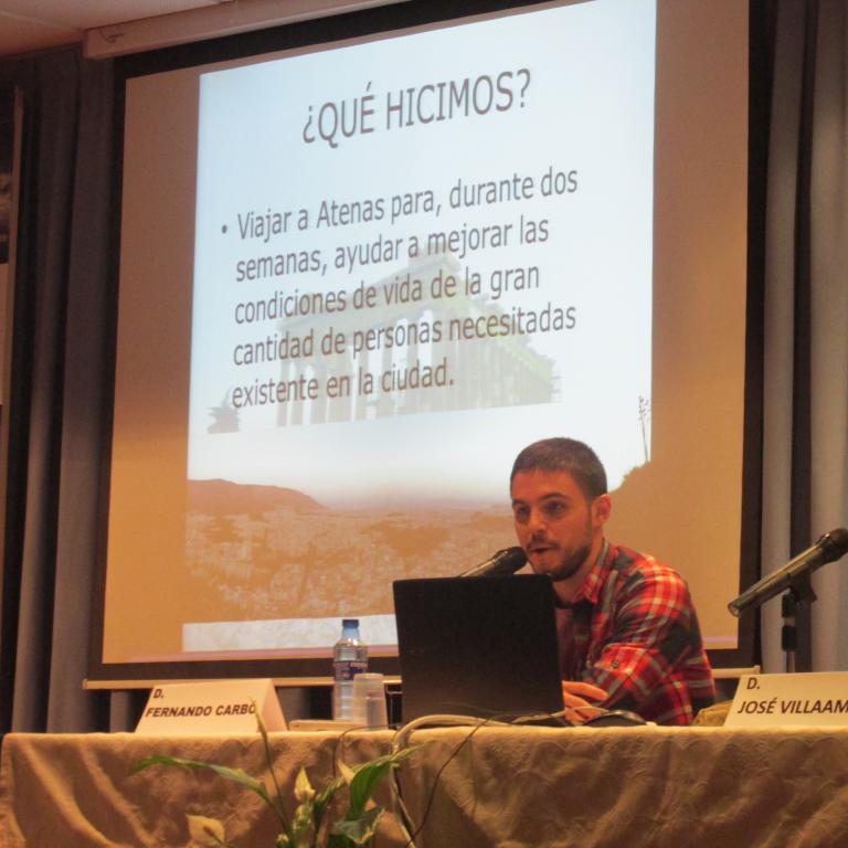 Fernando Carbó Espinosa, médico residente en Anestesiología, Reanimación y Terapéutica del Dolor, y su compañera, Diana Moreu Bibián, Fisioterapeuta Especialista en Uro-Ginecología, estuvieron juntos el pasado verano en Atenas, trabajando con refugiados. Diana no ha podido venir porque se encuentra en este momento trabajando en otro proyecto de voluntariado en México, pero Fernando no ha dudado en hacer los seiscientos kilómetros que separan Oviedo de Zaragoza, donde trabaja, para venir a contarnos su experiencia en el "Victoria Social Centre" de Atenas, una ciudad de contrastes y de caos, como él mismo dice.
