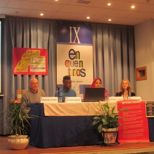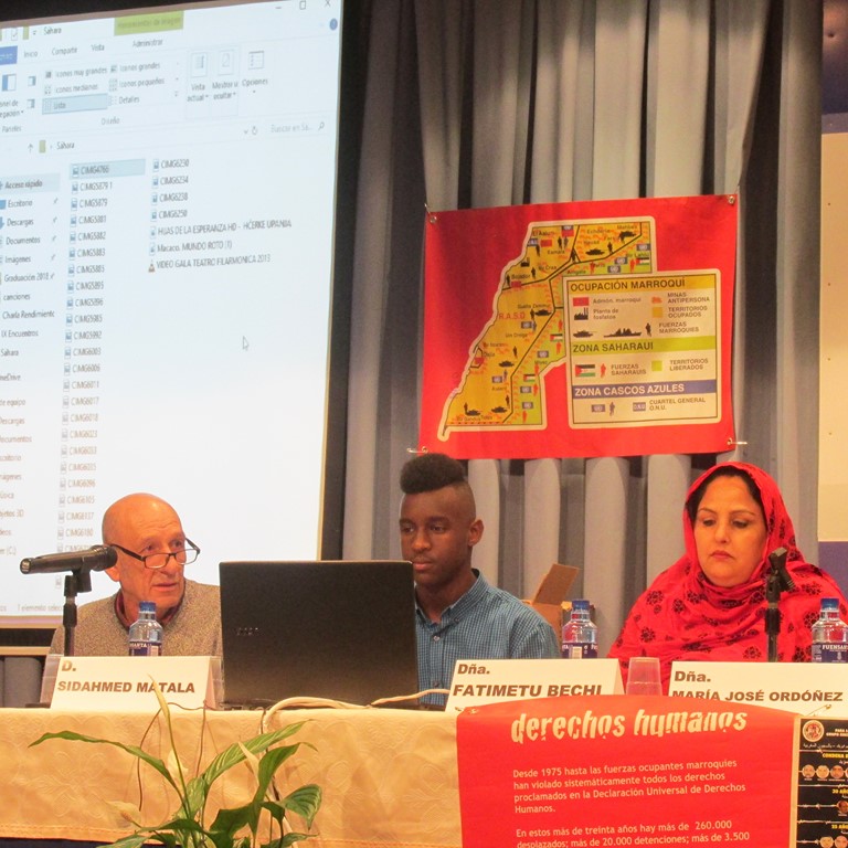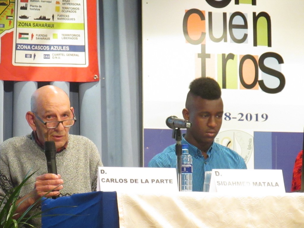 D. Carlos de la Parte Huerta , vocal de la Asociación Asturiana de Solidaridad con el Pueblo Saharaui, junto con D. Sidahmed Matala Embarec y Dña. Fatimetu Bechi Cori , ambos saharauis, fueron los ponentes con los que comenzamos nuestro último día de Encuentros 2019.