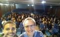 Ayudado (e interrumpido a veces) por el profesor José Villaamil, que compartió con él esta experiencia y tiene también mucho que contar, nos explicó detalles que nos llevaron hasta las complejas calles de Atenas: los barrios okupados donde no entra la policía en los que hay que recoger jeringuillas usadas para limitar infecciones; la céntrica plaza que se llena de olor a comida, colores, libros, música, lavadoras o asistencia médica, cuando Tassos (el director de "Steps") hace realidad el hecho de que todos somos iguales (“si ellos viven en la calle, nosotros debemos estar en la calle, crear en ella un espacio de convivencia para compartir”); la colina desde la que se ve el atardecer de siglos para poner un buen broche al final del día; la confianza absoluta, contra pronóstico, de algunos jóvenes refugiados que acaban de llegar, agotados y heridos, en que todo va a salir bien…