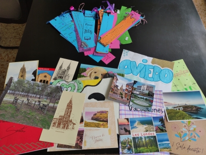 En el Día del libro, los alumnos de 1ºA y 1ºB de ESO no se olvidaron de sus amigos del colegio Nazareth de Voisenon. Con motivo de esta ocasión, les escribieron tarjetas postales contándoles lo que habían hecho durante las vacaciones y les fabricaron marcapáginas con proverbios sacados de unos dulces que les habían regalado y que también tradujeron del francés al español.