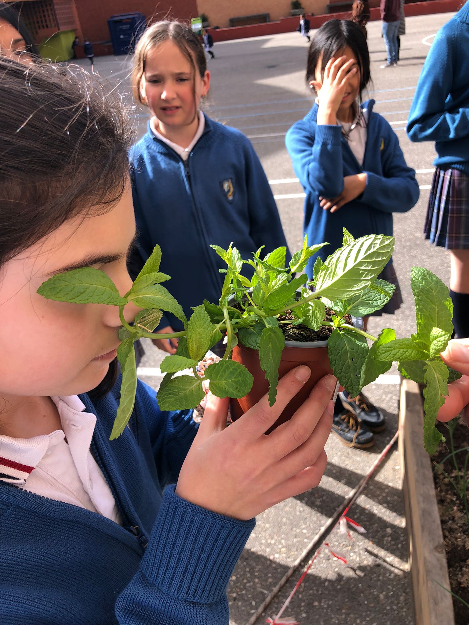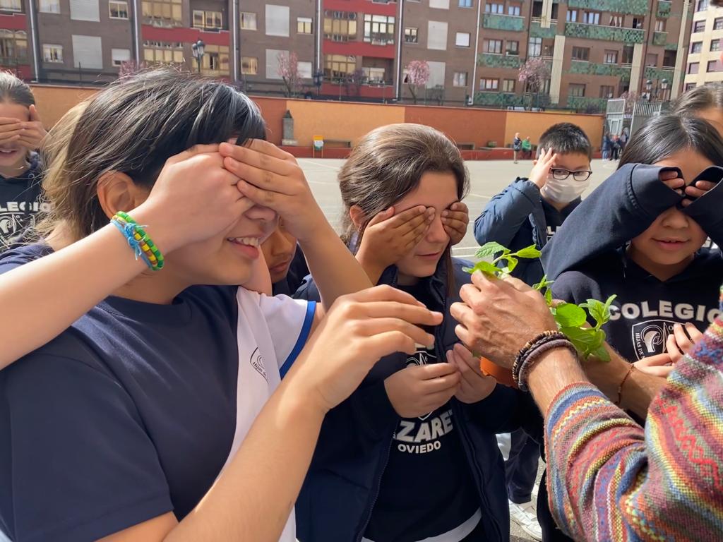 Con todo esto, se trabajó la parte sensorial de nuestro alumnado. En la galería de fotos se puede ver cómo se tapan los ojos para adivinar qué tipo de planta es solo con la ayuda de su olfato.