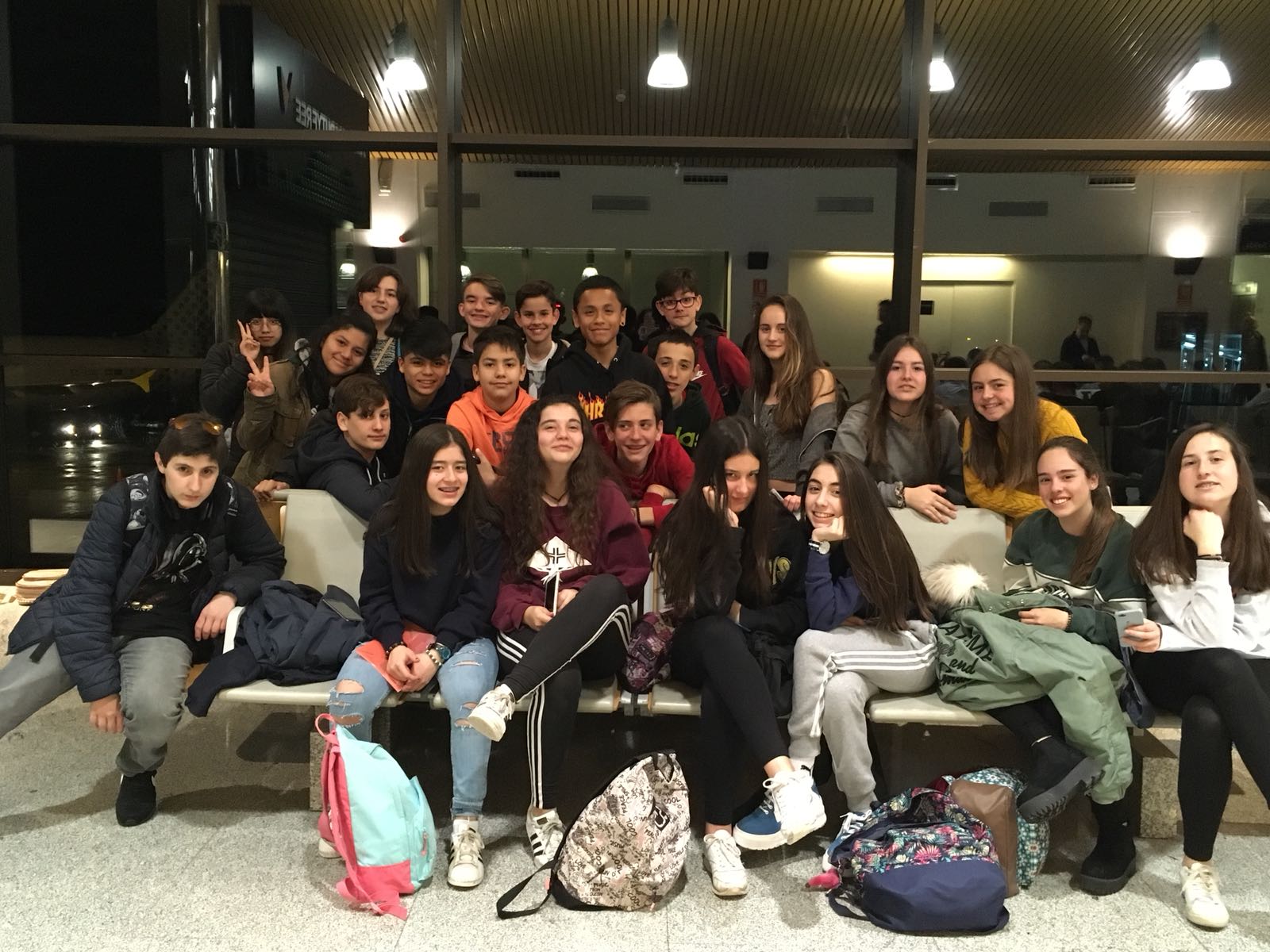 Los alumnos de 2º ESO que participan este curso en el Intercambio con Alemania partieron, con puntualidad germana, a las 5:00h. desde colegio hacia el aeropuerto de Asturias, acompañados de sus profesoras María y Encarna. Allí, tomaron el avión a las 7:30h. para llegar a Madrid a las 8:40h.