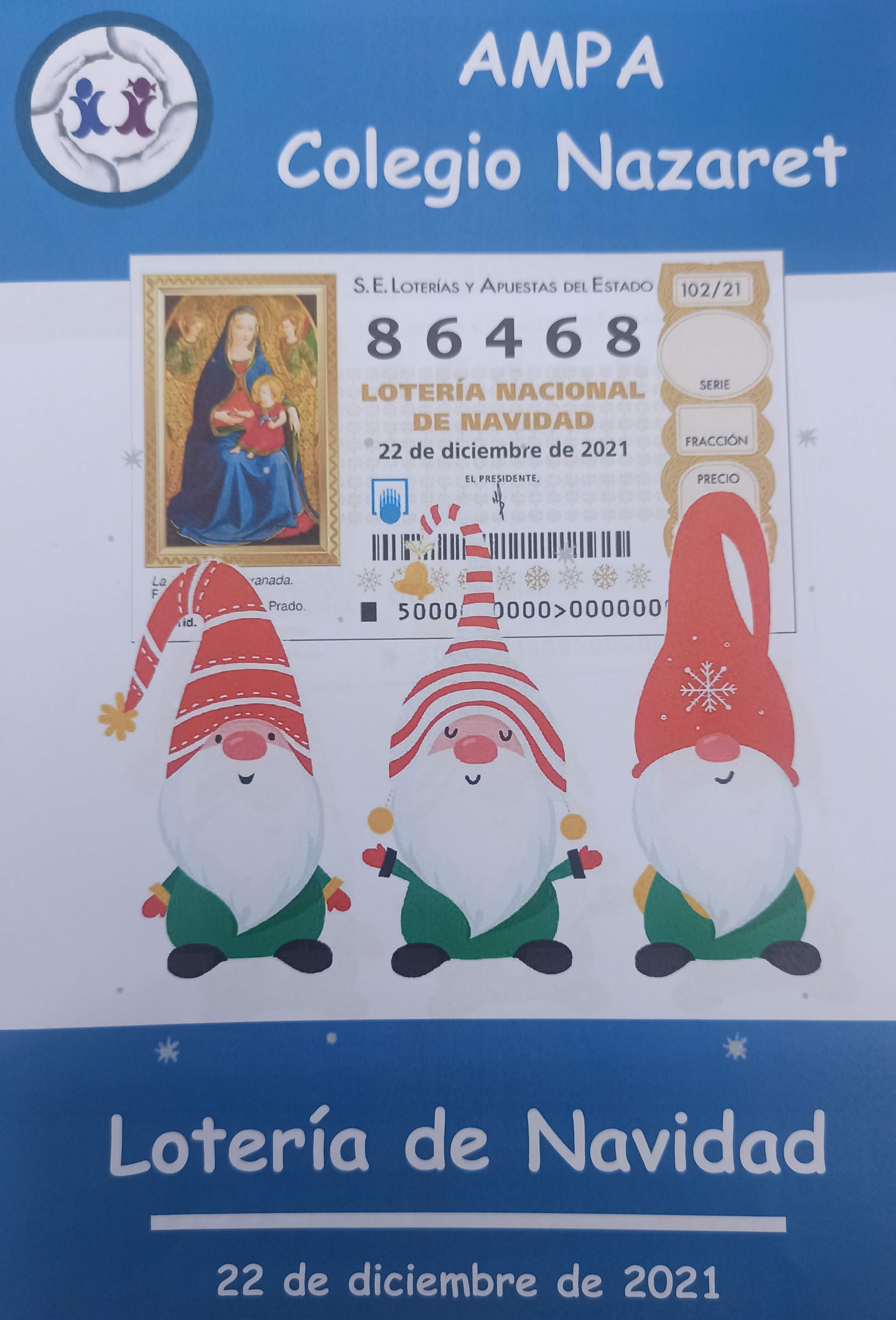 La Asociación de Madres y Padres de Alumnos del colegio venderá a partir de hoy lotería de Navidad por las tardes, desde la apertura del portón hasta las 16:45 h. Permanecerán hasta fin de existencias. ¡No os quedéis sin ella!