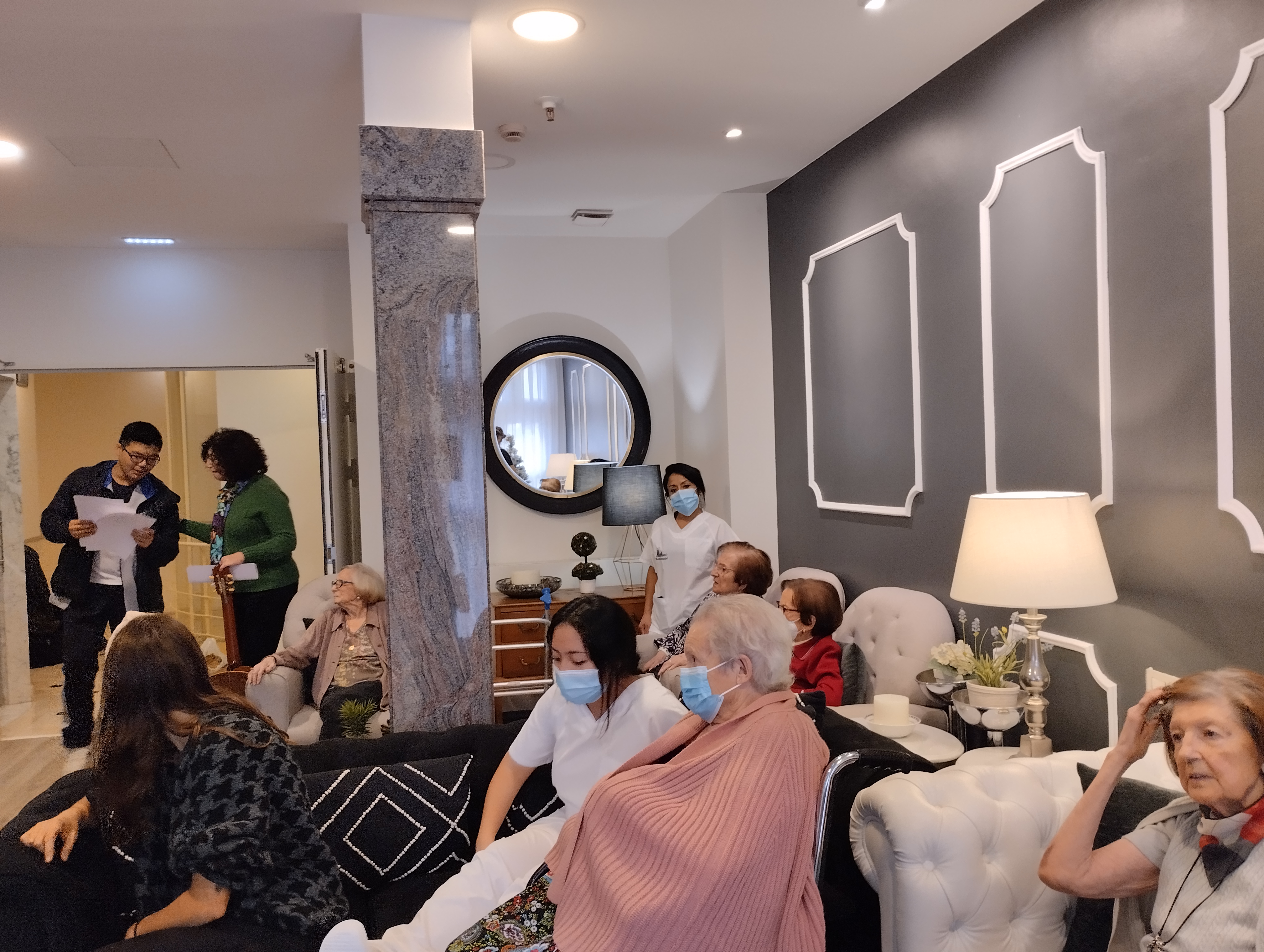 La terapeuta ocupacional que les acogió nos dedicó estas palabras: “Gracias por compartir vuestro talento con nosotros en la residencia. Cada una de las actuaciones fue cautivadora y trajo alegría a todos. Nos sentimos afortunados de haberos tenido aquí para crear recuerdos musicales inolvidables. Sin duda, repetiremos experiencia en el futuro. Gracias por hacernos las navidades un poco más especiales.”
