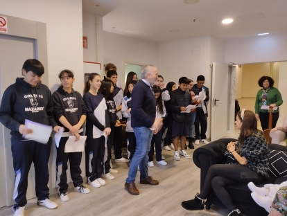 El grupo de 4º de ESO con la optativa de Música, acompañados de María, directora, y David, profesor de Música, fueron a felicitar la Navidad a la residencia Aramo Bombé el jueves, 21 de diciembre. Los alumnos compartieron villancicos populares con los mayores cantando junto a ellos acompañados por diferentes instrumentos; también bailaron dos coreografías navideñas con el mejor público posible: todos los abuelos presentes. Fue una experiencia inolvidable para todos que se repetirá, seguro, el próximo año.