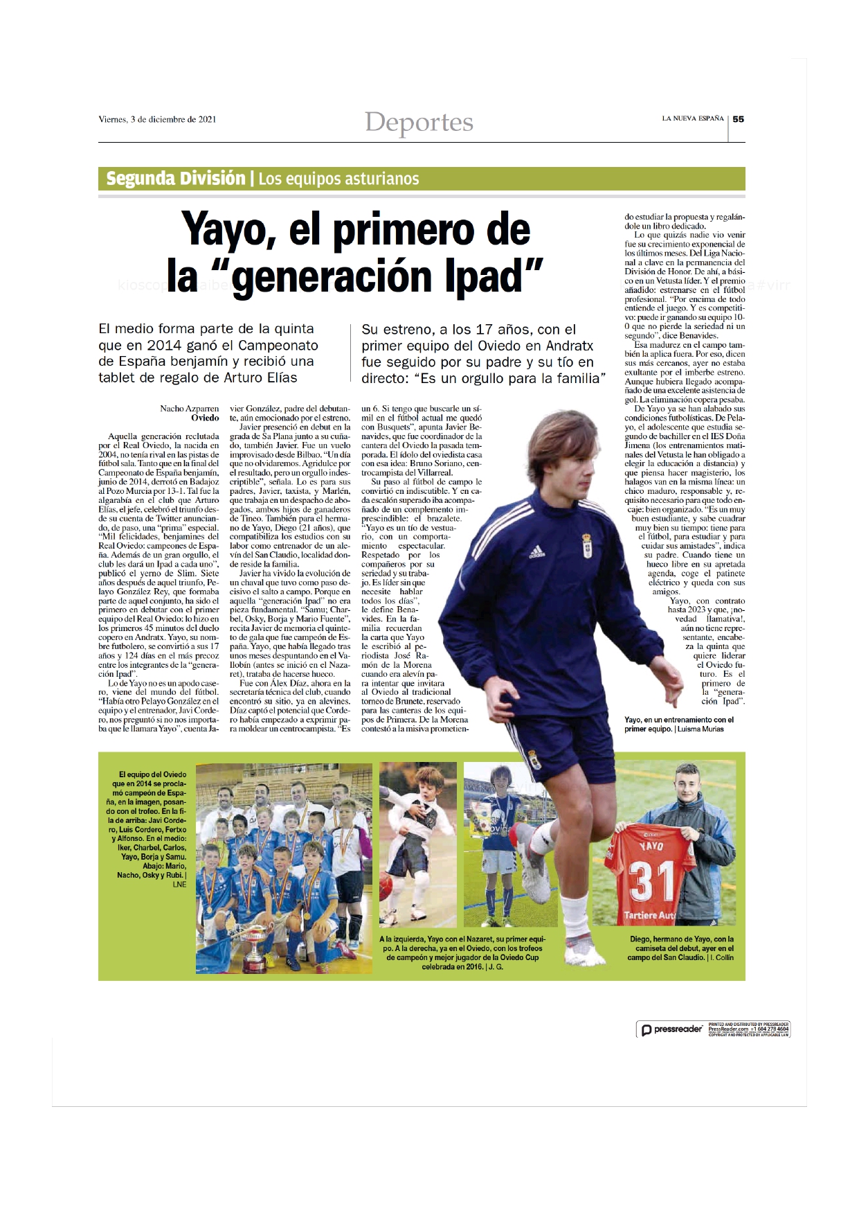 ¡Nuestros antiguos alumnos solo nos dan alegrías! Pelayo González Rey, graduado hace dos años, debutó ayer con el primer equipo del Real Oviedo. Todo el Colegio Nazaret estuvo pegado a la tele sin perderse detalle de nuestro fichaje, al que conocemos desde que no sabía atarse las botas... Tenemos mucha confianza en él, en su esfuerzo y en su talento.