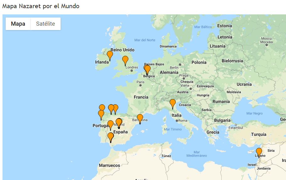 En este mapa vamos señalando la posición de los antiguos alumnos del Colegio Nazaret que van colaborando en nuestro proyecto Nazaret por el mundo. Hasta ahora, hemos recibido diecinueve contribuciones de exalumnos compartiendo con nosotros sus recuerdos del colegio y contándonos a qué se dedican actualmente.