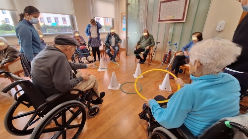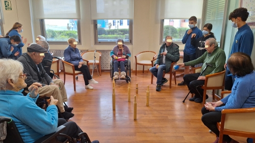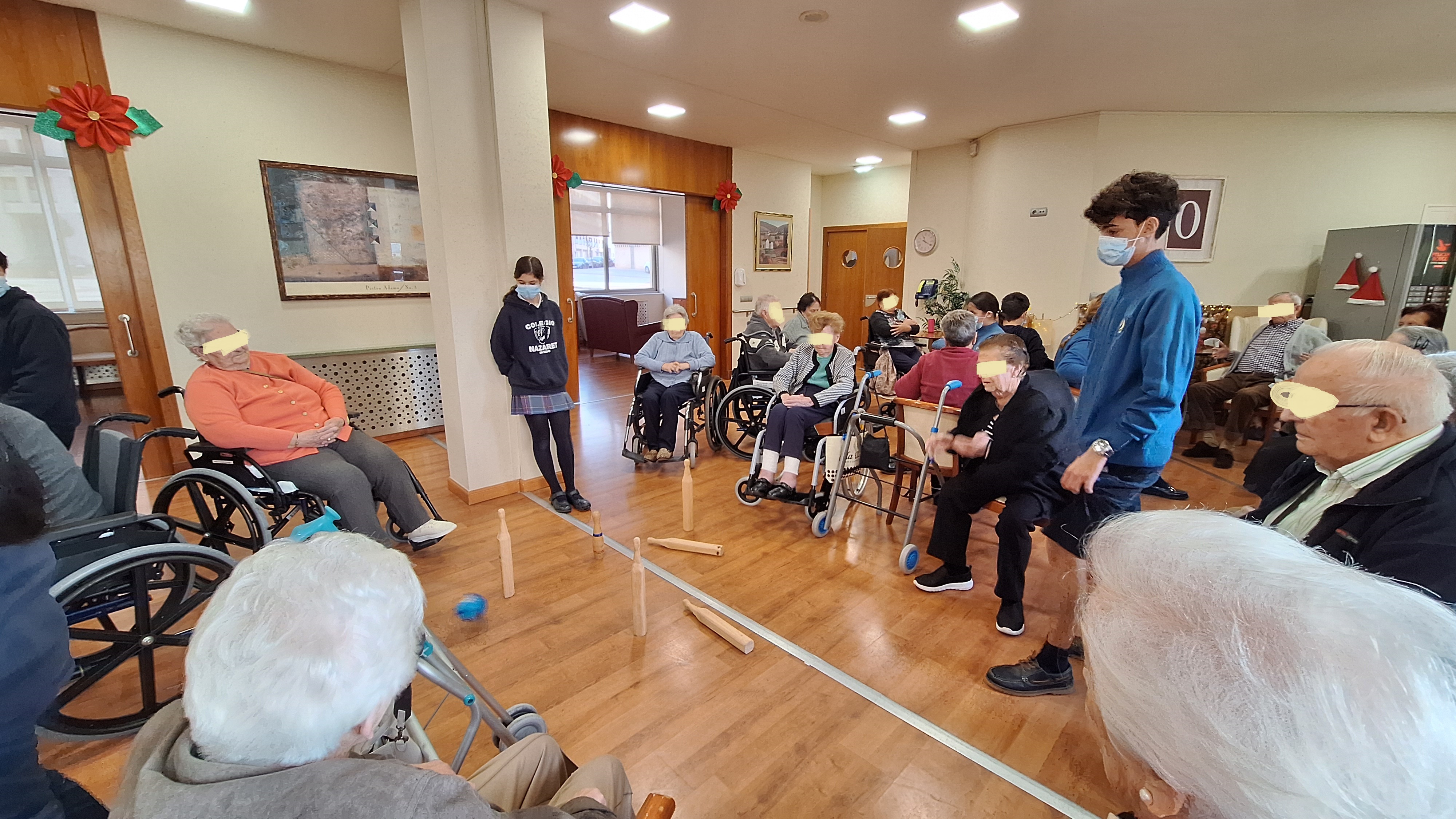 El pasado mes de diciembre, los alumnos de 2º de ESO acudieron a la residencia de ancianos Domus VI La Florida para realizar una sesión de Educación Física diferente y poner en práctica su trabajo de investigación trimestral acerca de la gimnasia adaptada a personas mayores. Para ello, realizaron diferentes ejercicios de movilidad articular, de contenido lúdico y de socialización. Además, compartieron experiencias los mayores de sus épocas pasadas, donde el ejercicio físico se basaba en el trabajo que realizaban en sus profesiones ya desde épocas bien jóvenes: agricultura, ganadería, minería... ¡Hasta cantaron villancicos! Sin duda,  fue una experiencia enriquecedora para todos.