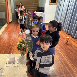 El mes de mayo es, para la Comunidad Tellista, un período muy importante, por eso, la oración de la mañana se realiza siempre en nuestros colegios de un modo muy especial. Este año, un día al a semana, realizamos la oración en el salón de actos acompañada de una ofrenda floral a la imagen de María, Maestra y Madre, nuestro ejemplo a seguir para traer más amor a este mundo nuestro; a Ella le pedimos esperanza, alegría y fuerza para toda la familia tellista.