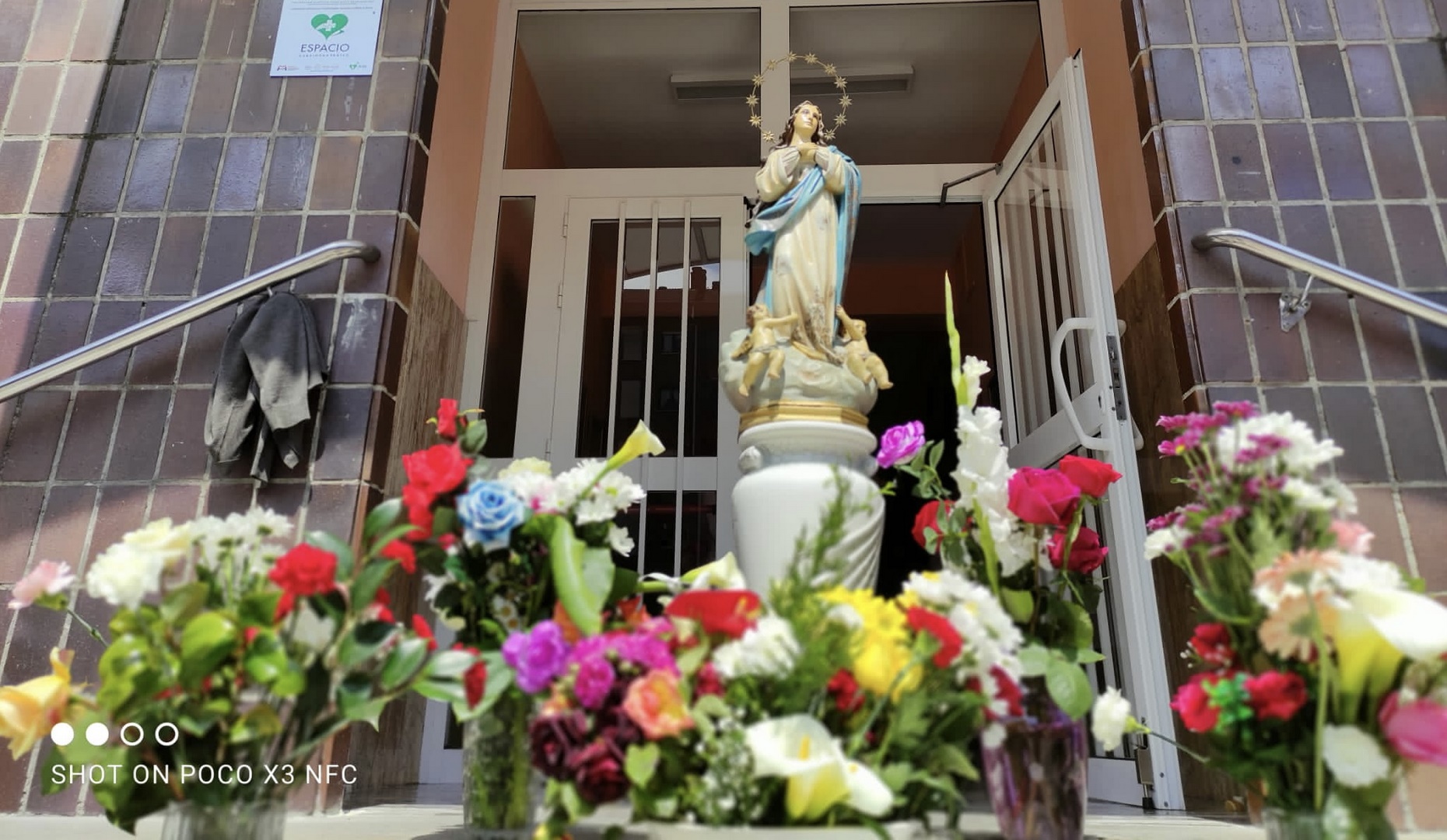 Con motivo del MES DE MARÍA, hemos realizado la oración del día de hoy en el patio, siempre respetando los espacios de los grupos burbuja (los alumnos de ESO a primera hora de la mañana y los de E.Primaria a primera de la tarde). Juntos hemos realizado una ofrenda floral a la imagen de María, Maestra y Madre, nuestro ejemplo a seguir para traer más amor a este mundo nuestro, que tanto lo necesita.