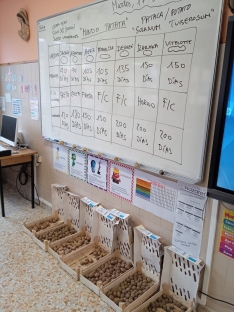 Para comenzar el trimestre, en la HUERTINA DEL NAZARET nos presentaron a la Señora Patata, todo un básico en nuestra gastronomía. Hemos aprendido a identificarla y a clasificarla según sus diferentes variedades y cultivos. Como dato de interés, resaltamos que España se ha posicionado como uno de los líderes en producción ecológica en Europa en general y de la patata en particular, y la tendencia augura una larga continuidad en este mercado. Por eso las sembraremos más adelante en nuestro huerto.