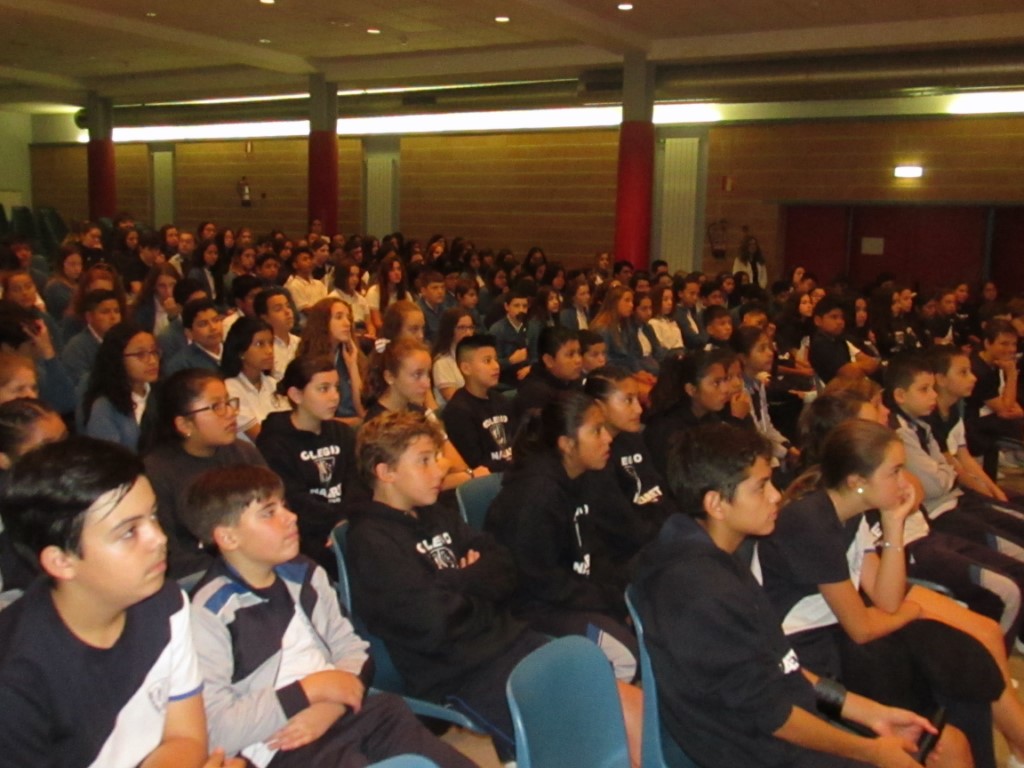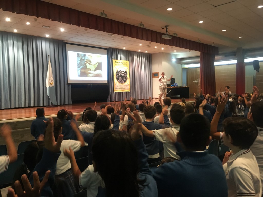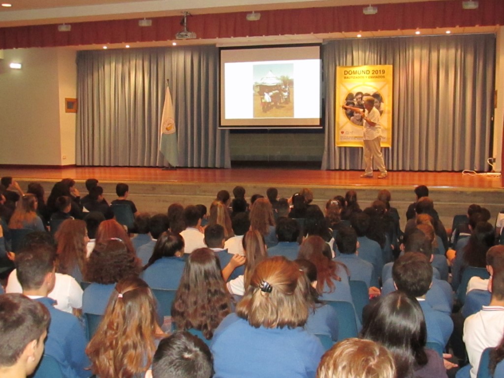 Se dirigió a los alumnos de E.Primaria y ESO en el tono cercano y positivo que siempre la acompaña, para acercarnos a su vida diaria, una realidad muy difícil en la que los niños solo disponen de su imaginación para jugar y con ella hacen carreras de coches usando la tapa de un bote vacío de mermelada como volante.