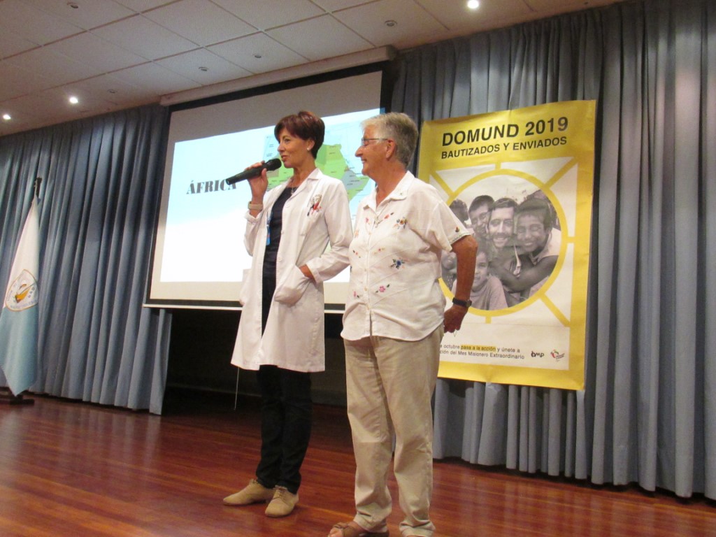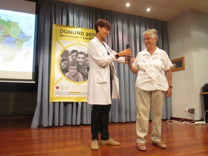 Hoy, la comunidad educativa del colegio Nazaret recibió calurosamente en el salón de actos a la misionera Pilar Boves, Hija de María Madre de la Iglesia. La hermana Pilar lleva nueve años en Moamba (Mozambique), repartiendo alegría y cariño, escuchando hasta cuando no entiende el idioma, porque no escucha con el oído, sino con el corazón.