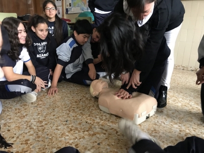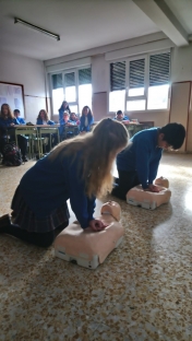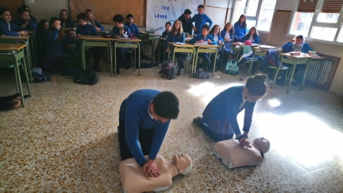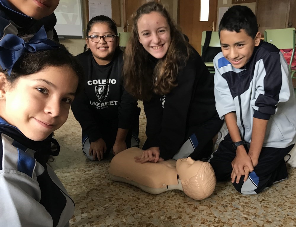Durante la semana pasada, los alumnos de 5º y 6º de E. Primaria y ESO realizaron un taller de Reanimación Cardiopulmonar (RCP) en sus aulas. De la mano de un equipo médico formado en parte por madres de alumnos de nuestro colegio, aprendieron a reaccionar en casos de atragantamiento, desvanecimiento y parada respiratoria.