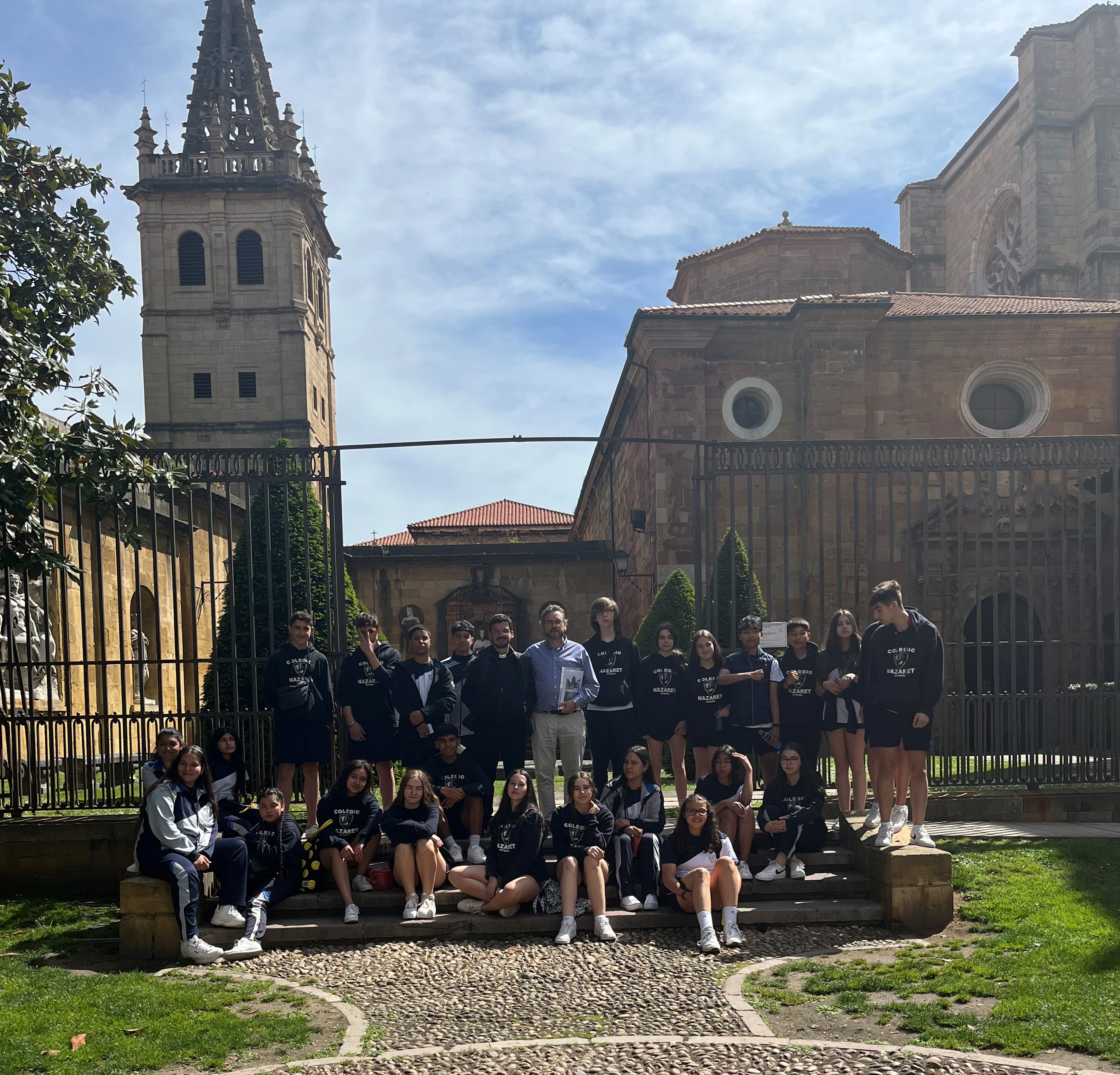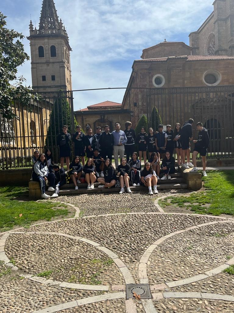 Los alumnos de 2º ESO A realizaron esta semana un recorrido por lugares de interés religioso en Oviedo, acompañados por su profesor de Religión. Partiendo del campo de San Francisco , pasaron por la Universidad, la cofradía de la Balesquida, el camino de Santiago, la cocina económica, las Pelayas, el palacio arzobispal, el convento de San Vicente, diversas iglesias y la catedral (incluida la Cámara Santa y el claustro). En ella charlaron con D. Jorge Fernández, misionero asturiano que lleva 16 años en Bangalore (India). Sor Fernanda, monja de las Hijas de la Caridad, les mostró y explicó la labor social de la cocina económica.