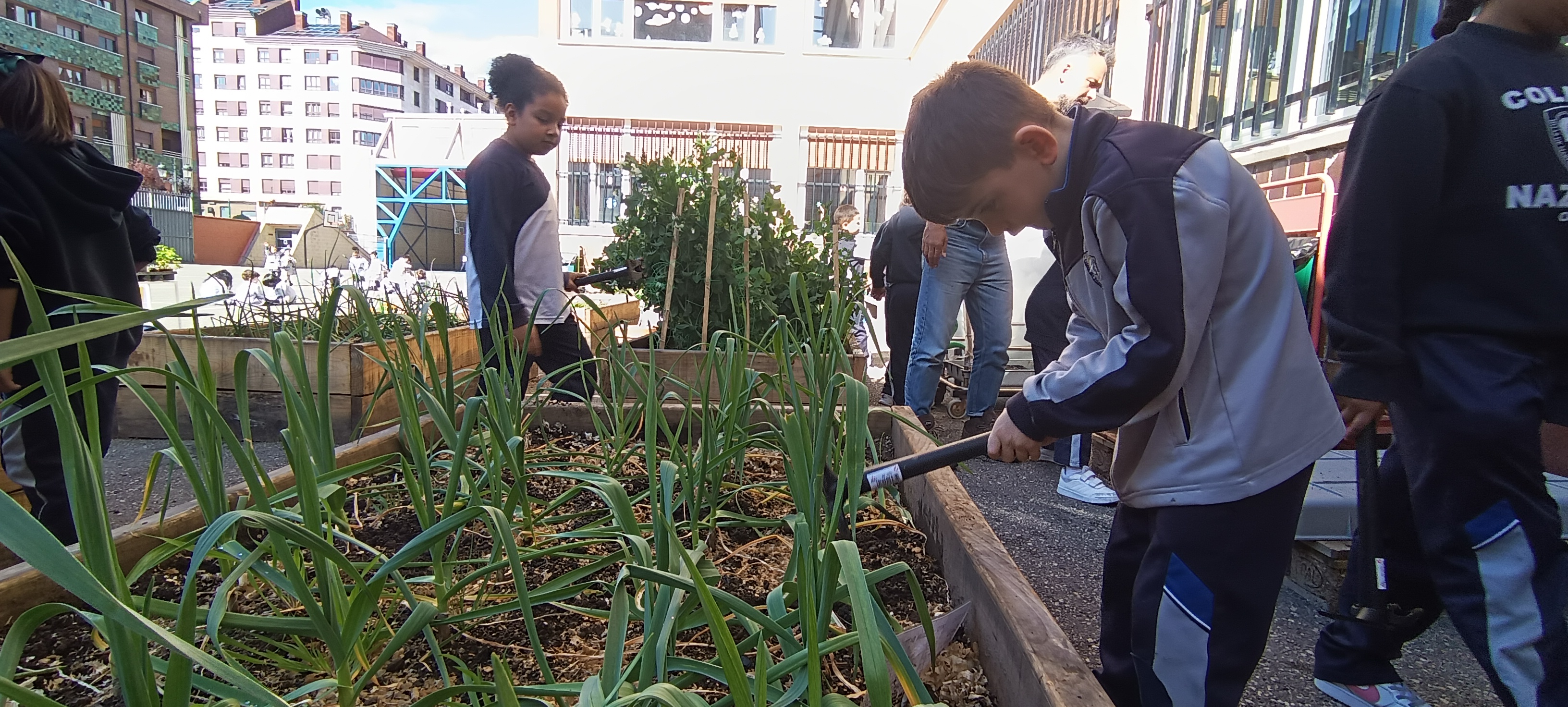 Continuando con el Proyecto de Innovación de nuestra Cooperativa, el alumnado del segundo y tercer ciclo de Educación Primaria han trabajado conceptos relacionados con la “economía circular”, percatándose de que es la solución: es sostenible, genera trabajo, respeta el planeta y no genera residuos. De este modo, se han familiarizado con el compostaje, con la prevención y el mantenimiento de los cultivos de manera ecológica, destacando la función de las plantas acompañantes. Por eso, motivados, dispuestos y concienciados con el medio ambiente, se han puesto manos a la obra para colaborar por el mantenimiento y mejora de nuestro planeta.
