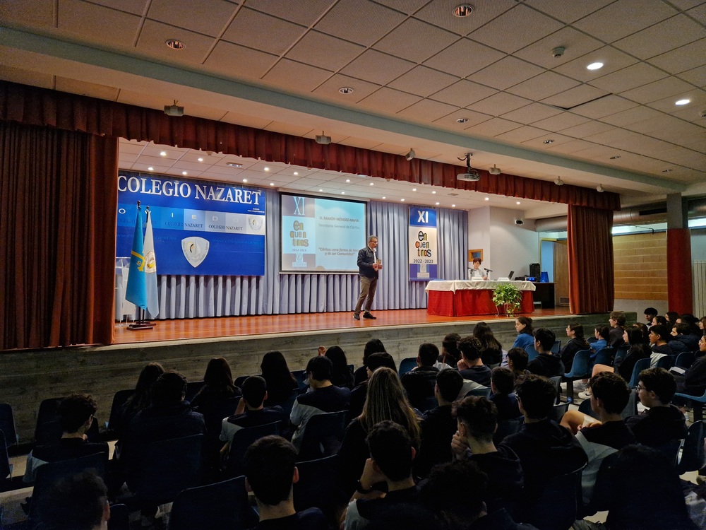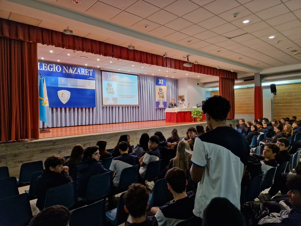 Finalmente, y respondiendo una de la gran variedad de preguntas que los alumnos de 3º y 4º de ESO le dirigieron, nos dejó un interesante mensaje: Cáritas tiene un reto permanente, equilibrar la diversidad con la comunión. Otros retos internos son siempre los de la sostenibilidad económica para realizar nuestra misión, pero la más importante es la incorporación de voluntariado joven, ya que sin voluntarios la acción de Cáritas es imposible y no podría llegar a donde llega, ni estar presente en tantos rincones como está; por lo que invitó y animó al alumnado a su participación como voluntarios de Cáritas.