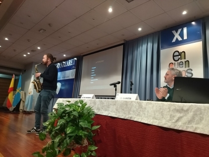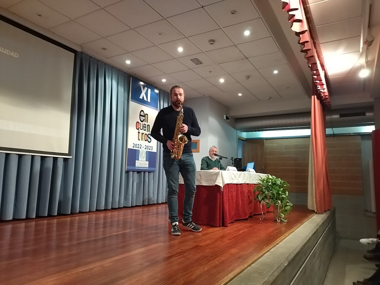 Durante la ponencia, se realizaron diversas cuestiones relacionadas sobre la vida del músico y se crearon una serie de juegos musicales donde el alumnado participó en de una improvisación sobre el célebre tema Take five, de David Brubeck.