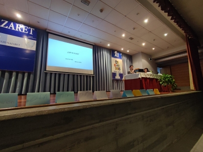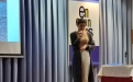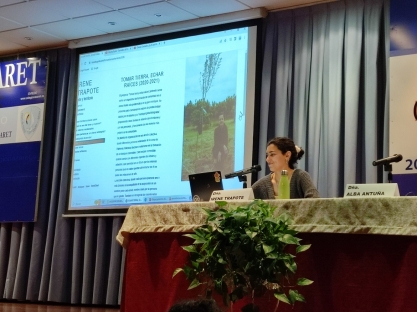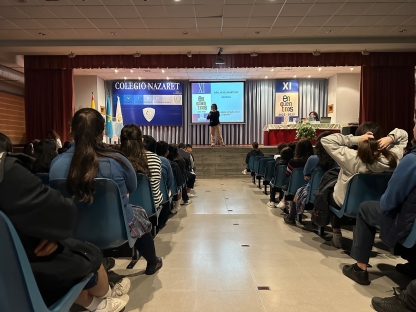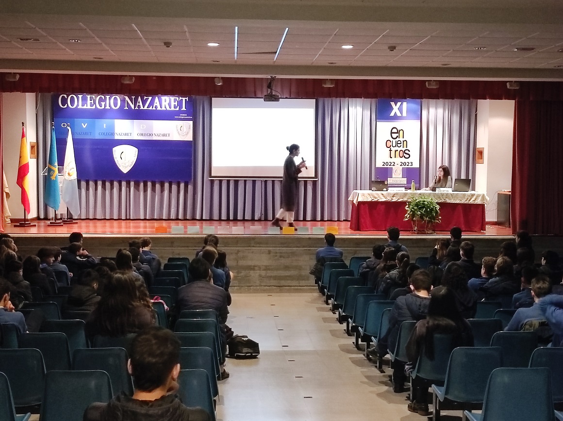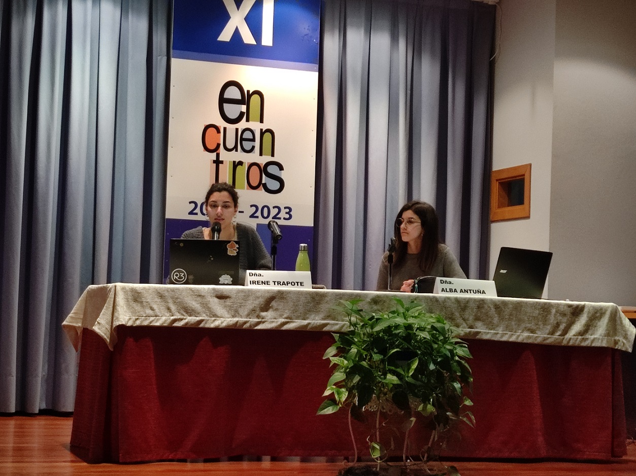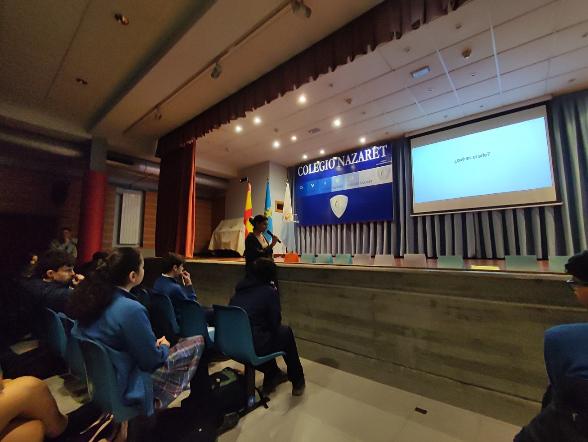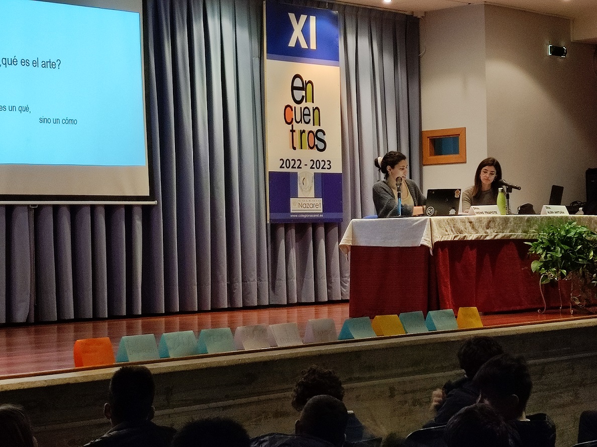En el segundo "Encuentro" del día, contamos con la presencia de Irene Trapote Carpintero, una joven artista contemporánea que nos mostró sus obras más recientes. Nos cuenta cómo sus proyectos multidisciplinares se centran en la teoría de espacios, la ecología y el feminismo. Una vez introducidos en su forma de trabajar, con la participación del alumnado se trató de definir la palabra arte poniendo en común su significado de forma visual. Finalmente, nos explicó que el arte ‘’es un cómo y no un qué’’ mostrándonos varios ejemplos artísticos, como Semiotics of the Kitchen (Semióticas de la cocina) de Martha Rosler. Tras las preguntas del alumnado de 3º y 4º de la ESO, Irene termina comentando que el arte va mucho más allá del dibujo y la pintura, se trata de querer dar un mensaje. También añade para finalizar, que no hay ningún requisito para considerar a una persona artista, todos podemos crear arte si sabemos el mensaje que queremos comunicar.