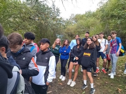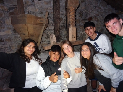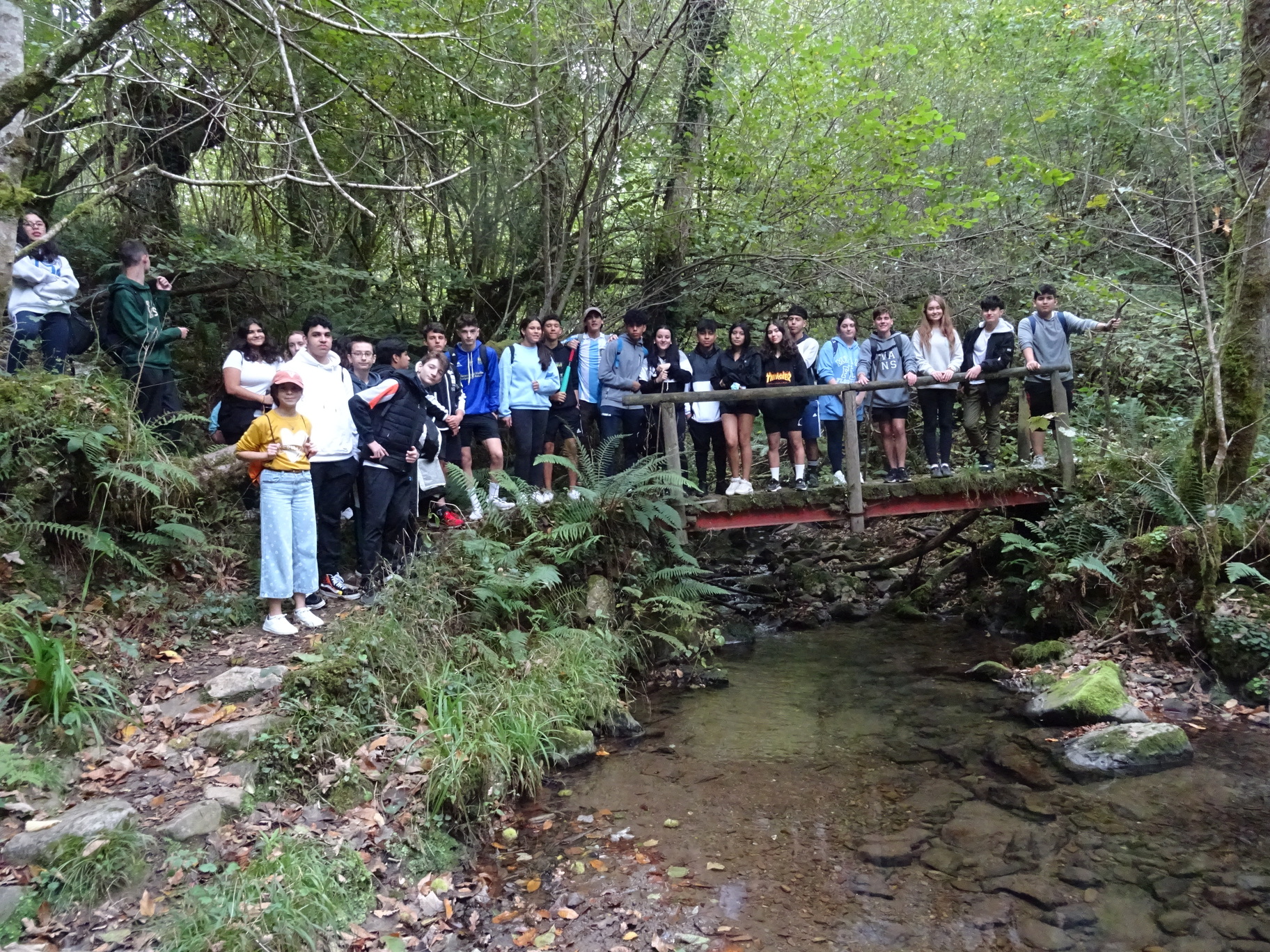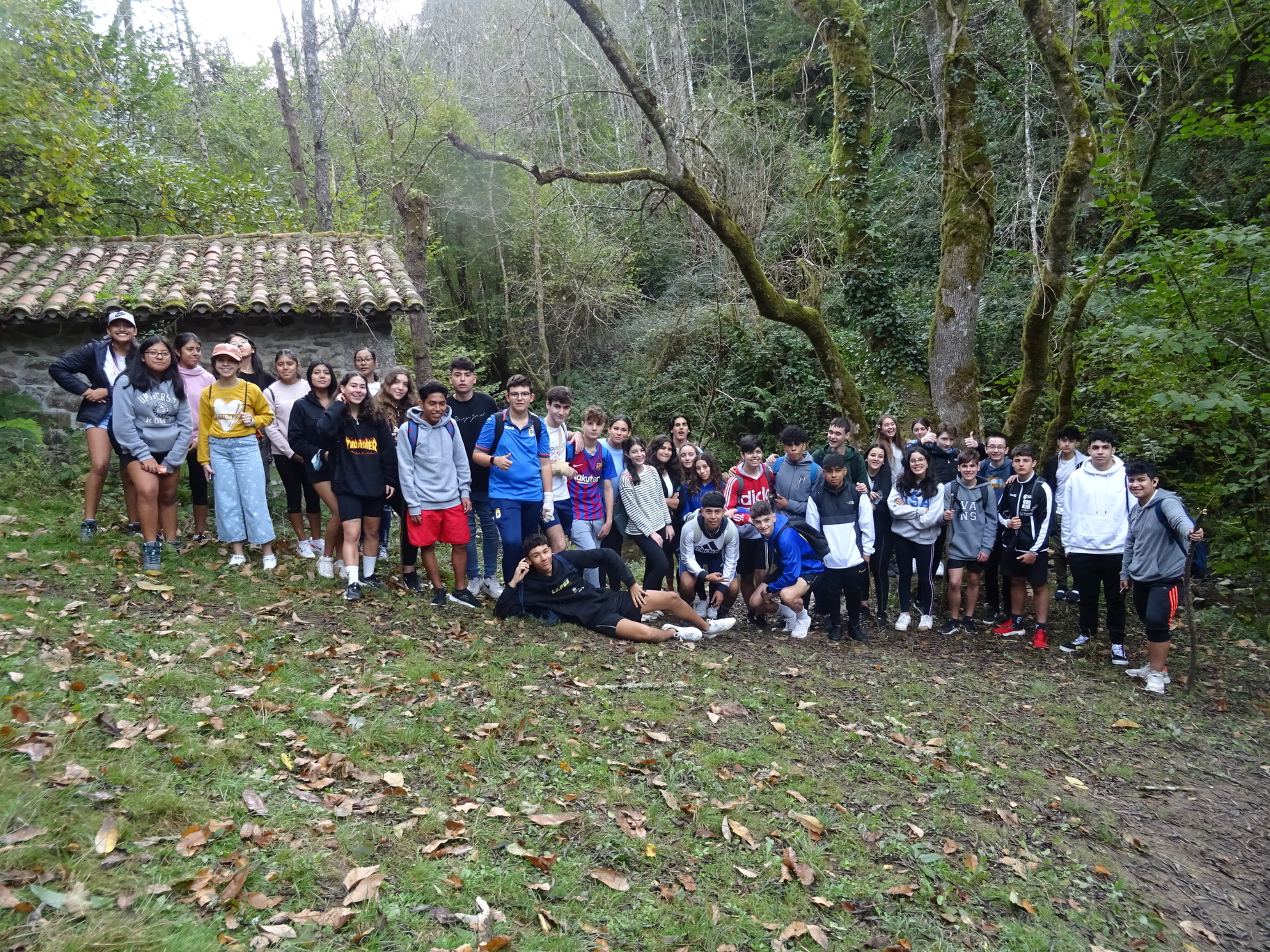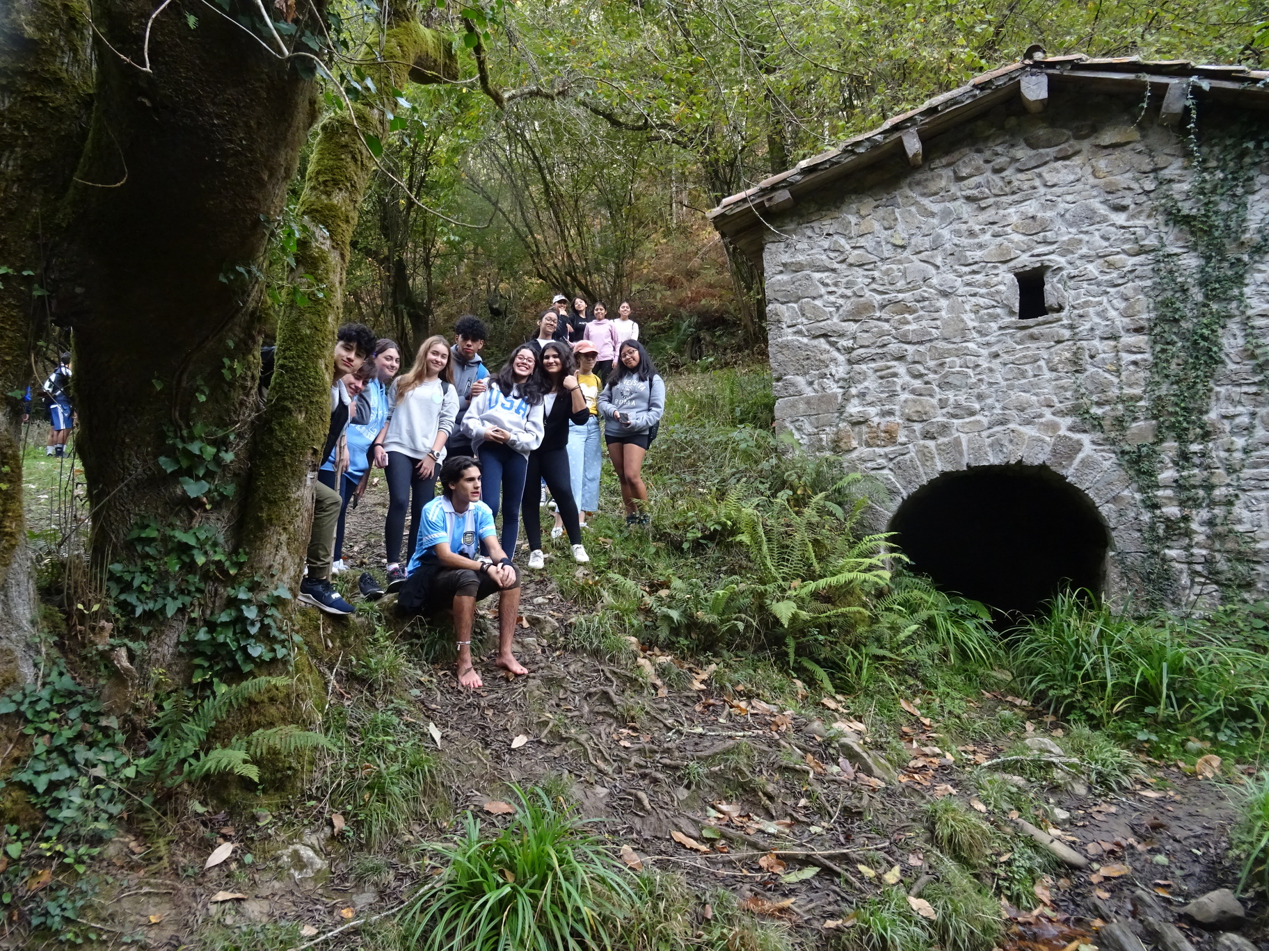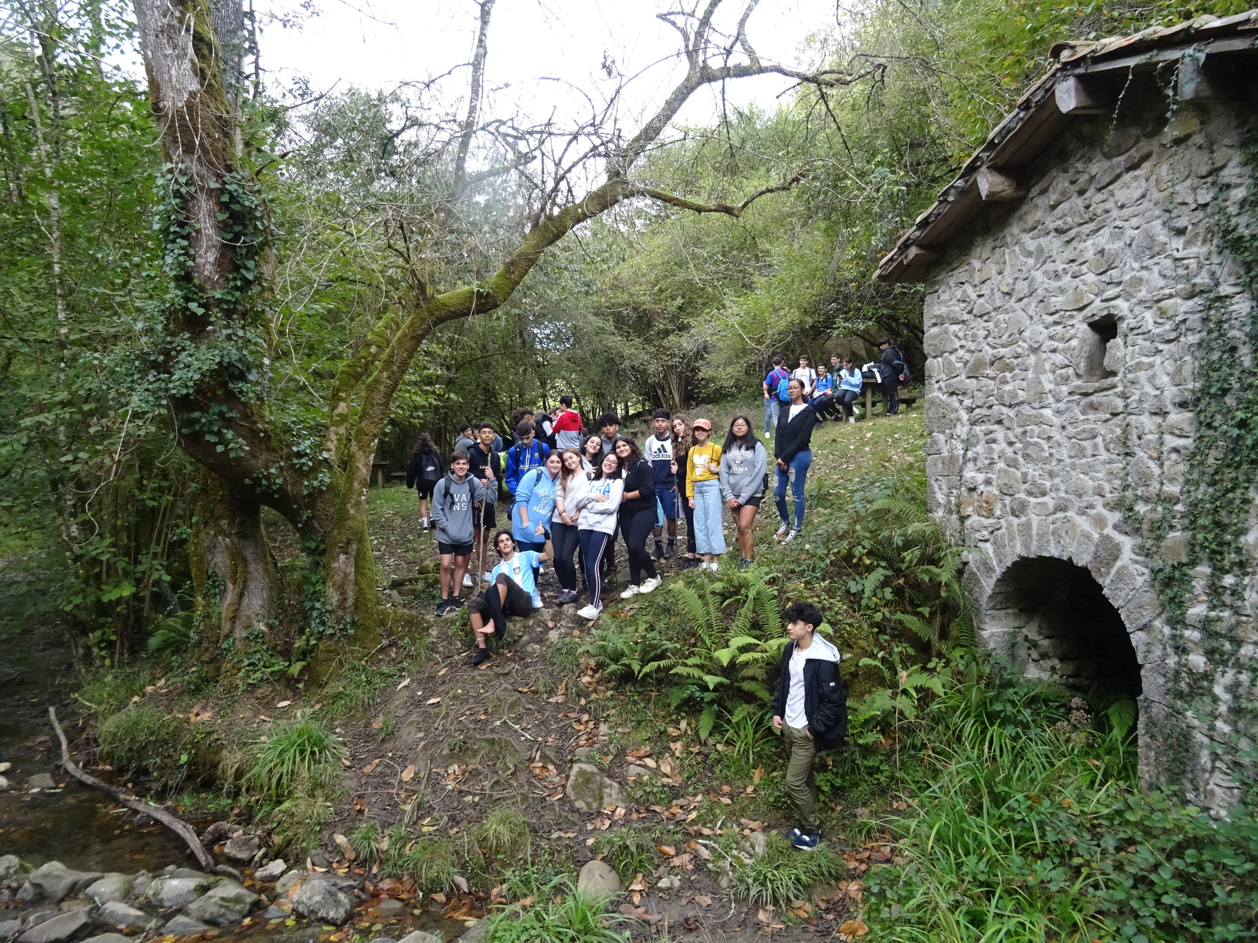 Los alumnos de 4º ESO, acompañados por los profesores Marta Madera y Marcial Serrano, visitaron el 21 de octubre la Ruta de los Molinos, en el concejo de Bimenes. Esta zona es colindante al Paisaje Protegido de las Cuencas Mineras. Tras pasar por la capital, Martimporra, se comenzó la ruta a las afueras del pueblo de Rozaes. Siguiendo un sendero sinuoso entre pastos y bosques, se pasó por una serie de molinos hidráulicos, utilizados antiguamente para moler grano con la fuerza del río. Por el camino fueron “pañando castañes” para llevar a casa.