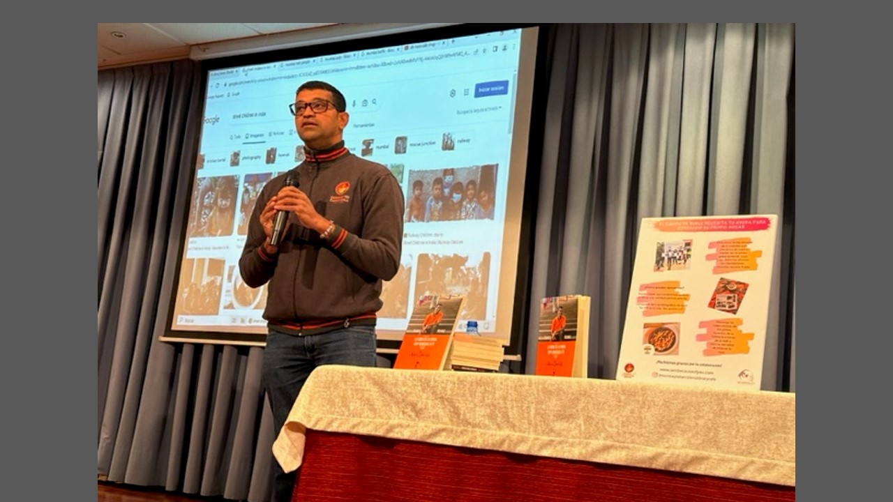 Finalmente, con la ayuda de quienes para él fueron “sus ángeles de la guarda” consiguió salir de la calle y escribir y publicar su libro. Los beneficios de la venta de este libro van destinados a sus tres “cafeterías- librerías” en Bombay que dan trabajo a jóvenes sin hogar y ayuda a todos aquellos que lo pueden necesitar. Todos nuestros alumnos escucharon con atención y entendieron el mensaje que Amín les dio: luchar por sus sueños y agradecer con una sonrisa los beneficios que nos ofrece vivir en el primer mundo.
