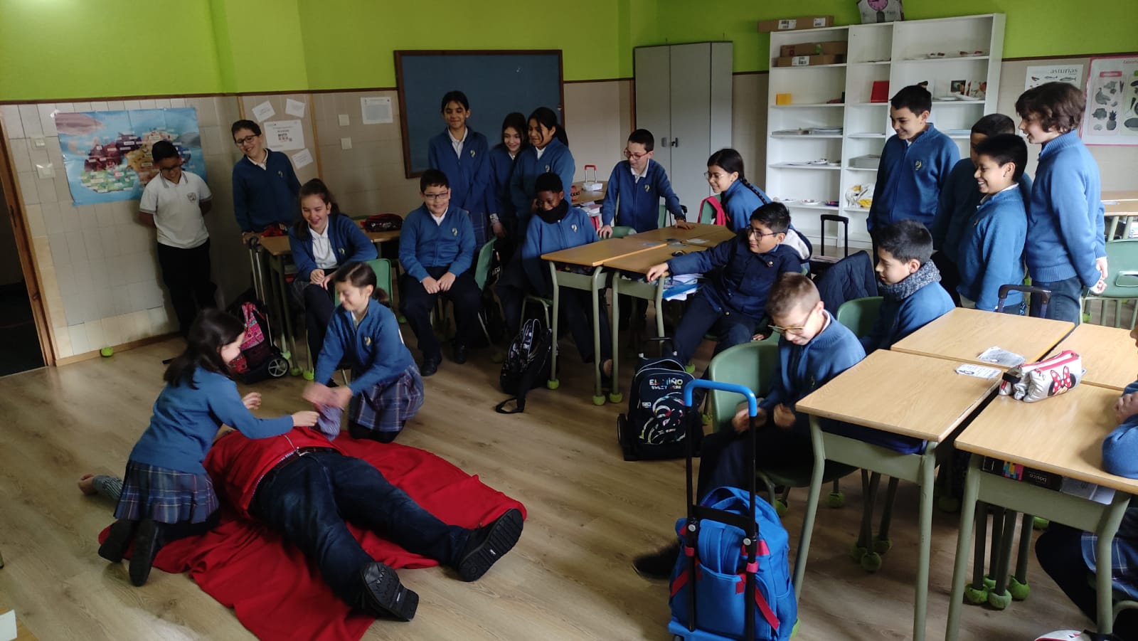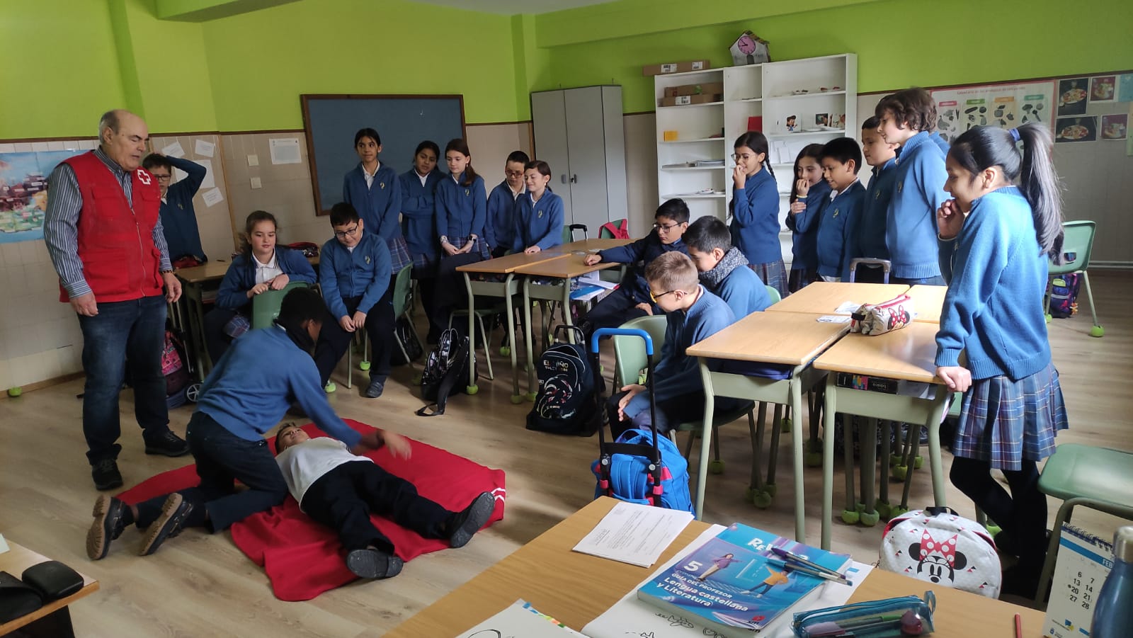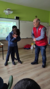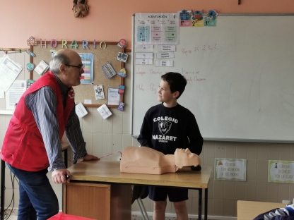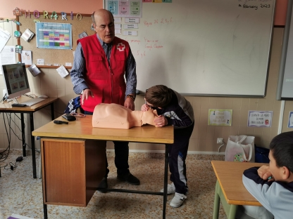 Los alumnos de 5º de E. Primaria participaron en un taller de Primeros Auxilios impartido por Cruz Roja, donde se plantearon varias situaciones reales y cotidianas en las que podrían verse inmersos, precisando de unos conocimientos elementales sobre estas cuestiones que podrían salvar la vida de algún familiar o persona cercana en caso de accidente.
