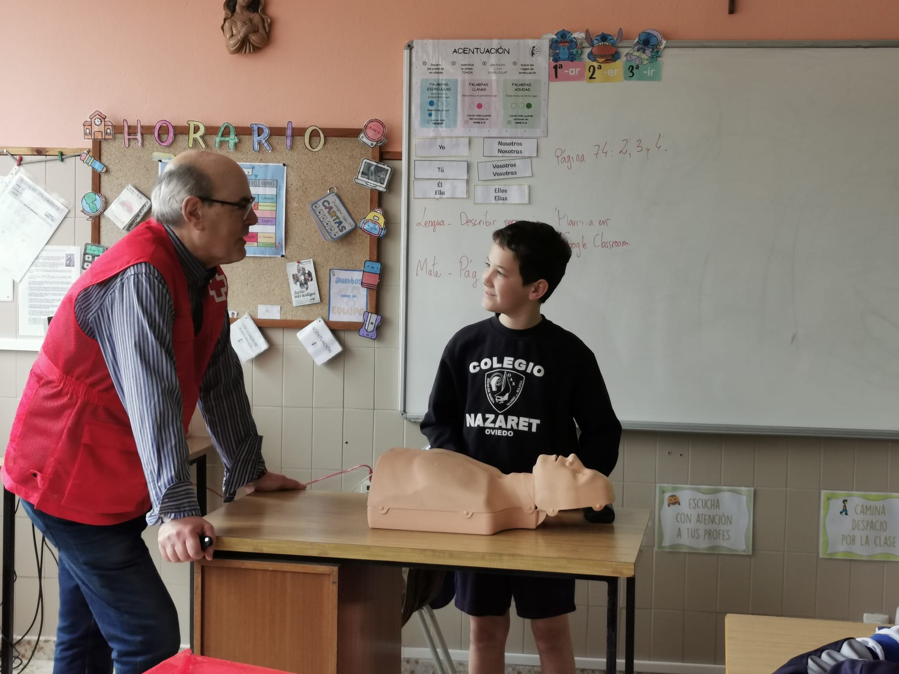 A lo largo del taller, los alumnos descubrieron qué hacer en casos como atragantamientos, ahogamientos, desmayos, etc., aprendieron cómo colocar a una persona en la posición lateral de seguridad, a realizar un masaje cardiaco o la maniobra de Heimlich pero, sobre todo, aprendieron la necesidad de llevar a cabo cualquier actuación buscando siempre la máxima seguridad, aplicando el protocolo proteger-avisar-socorrer y utilizando el asesoramiento de los profesionales del 112.