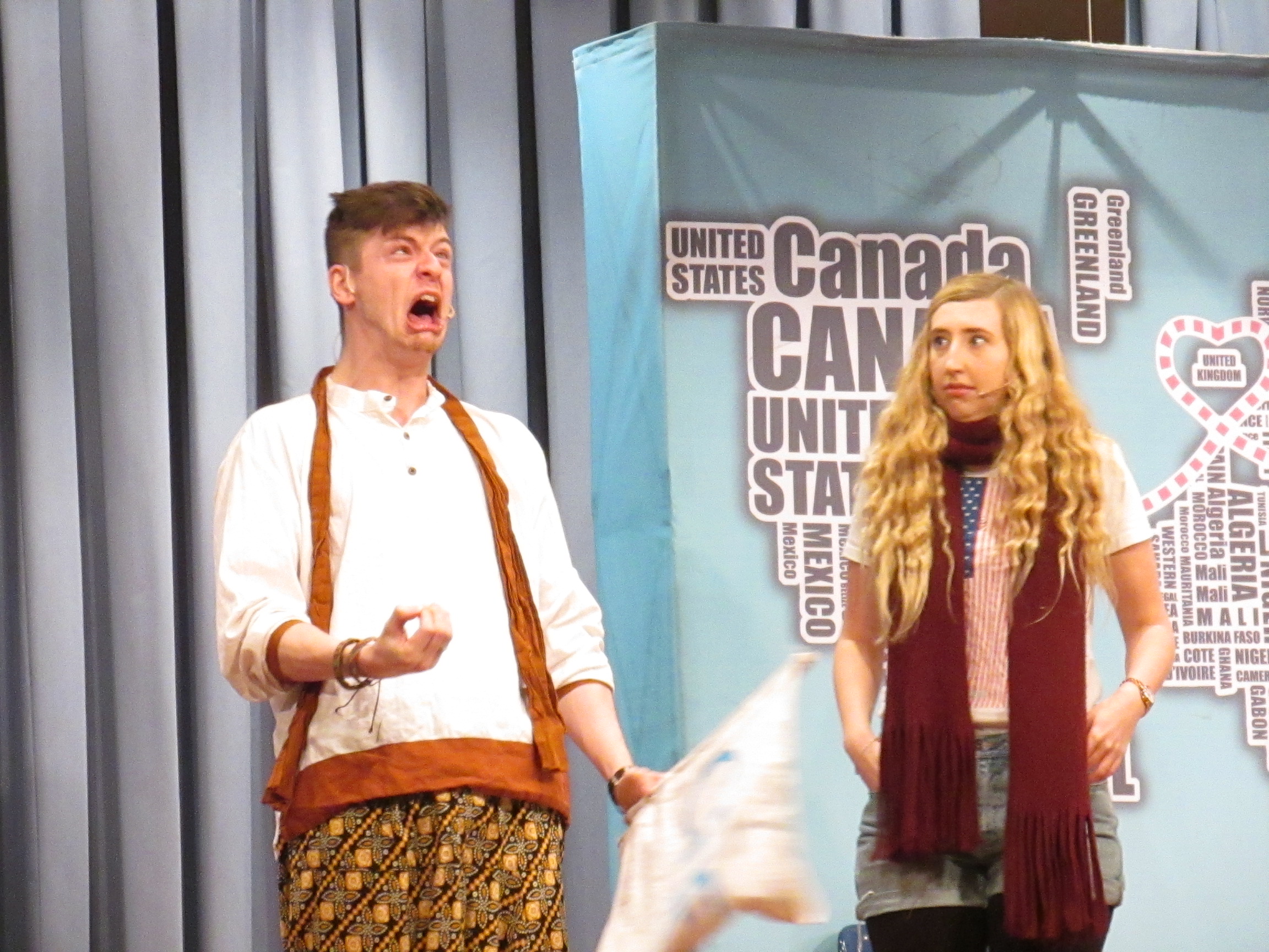 Los alumnos de ESO asistieron, el viernes 16 de marzo, a una obra de teatro en inglés en el salón de actos del colegio. La obra comenzó con en el reencuentro de dos antiguos compañeros de colegio que coinciden en el aeropuerto de Londres y comienzan a charlar y recordar viejos tiempos. Los actores supieron captar, durante toda la obra, la atención de los alumnos a través de la música, el baile y el diálogo. En algunos momentos, necesitaron la colaboración de los alumnos que, voluntariosamente, subieron al escenario y siguieron las instrucciones de los actores convirtiéndose ellos mismos en protagonistas de la obra.