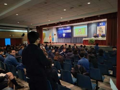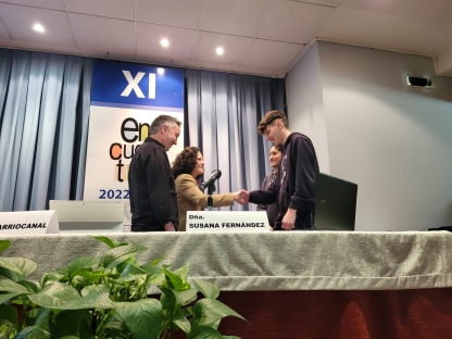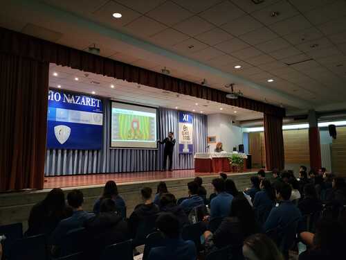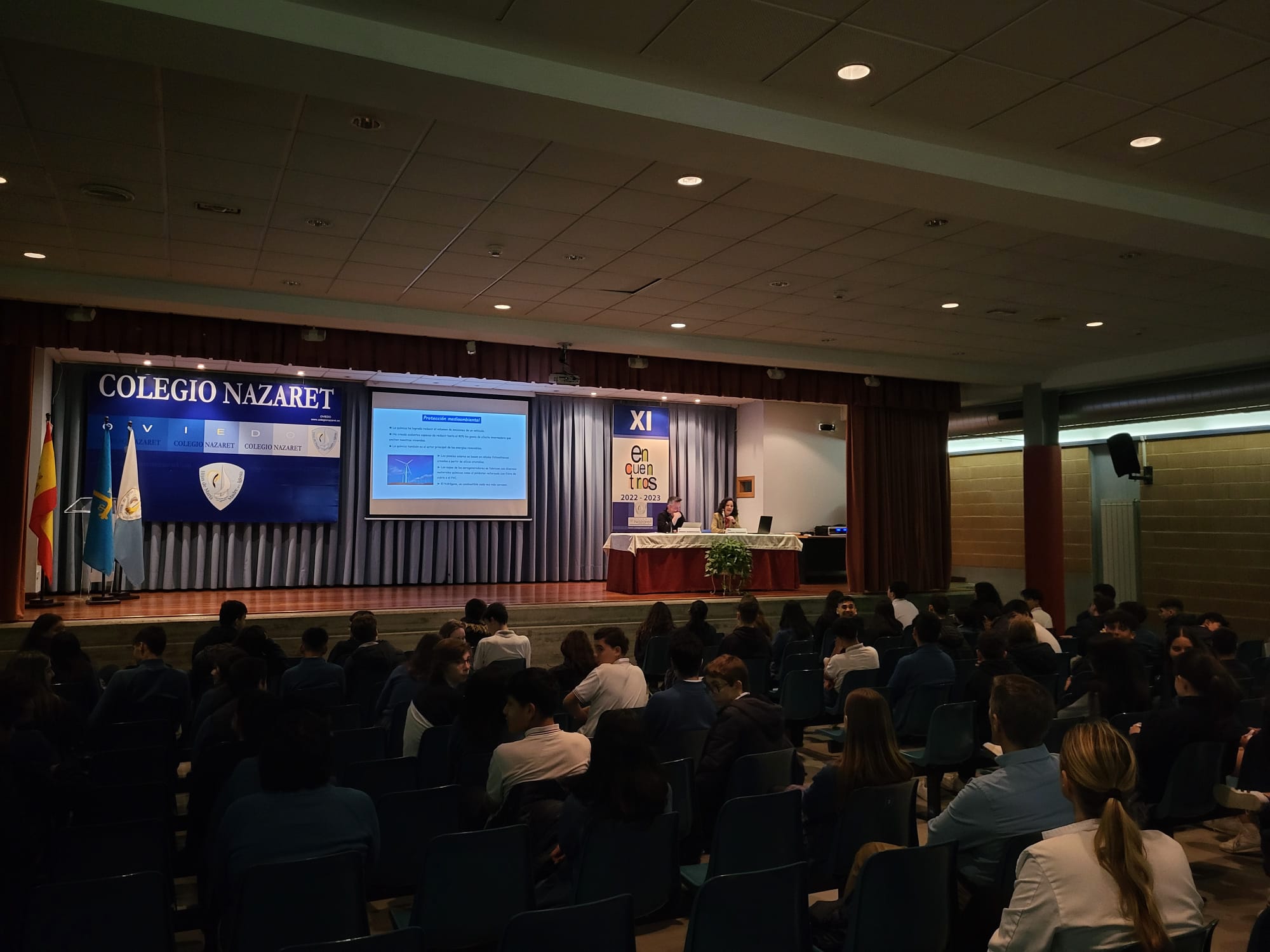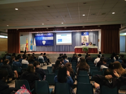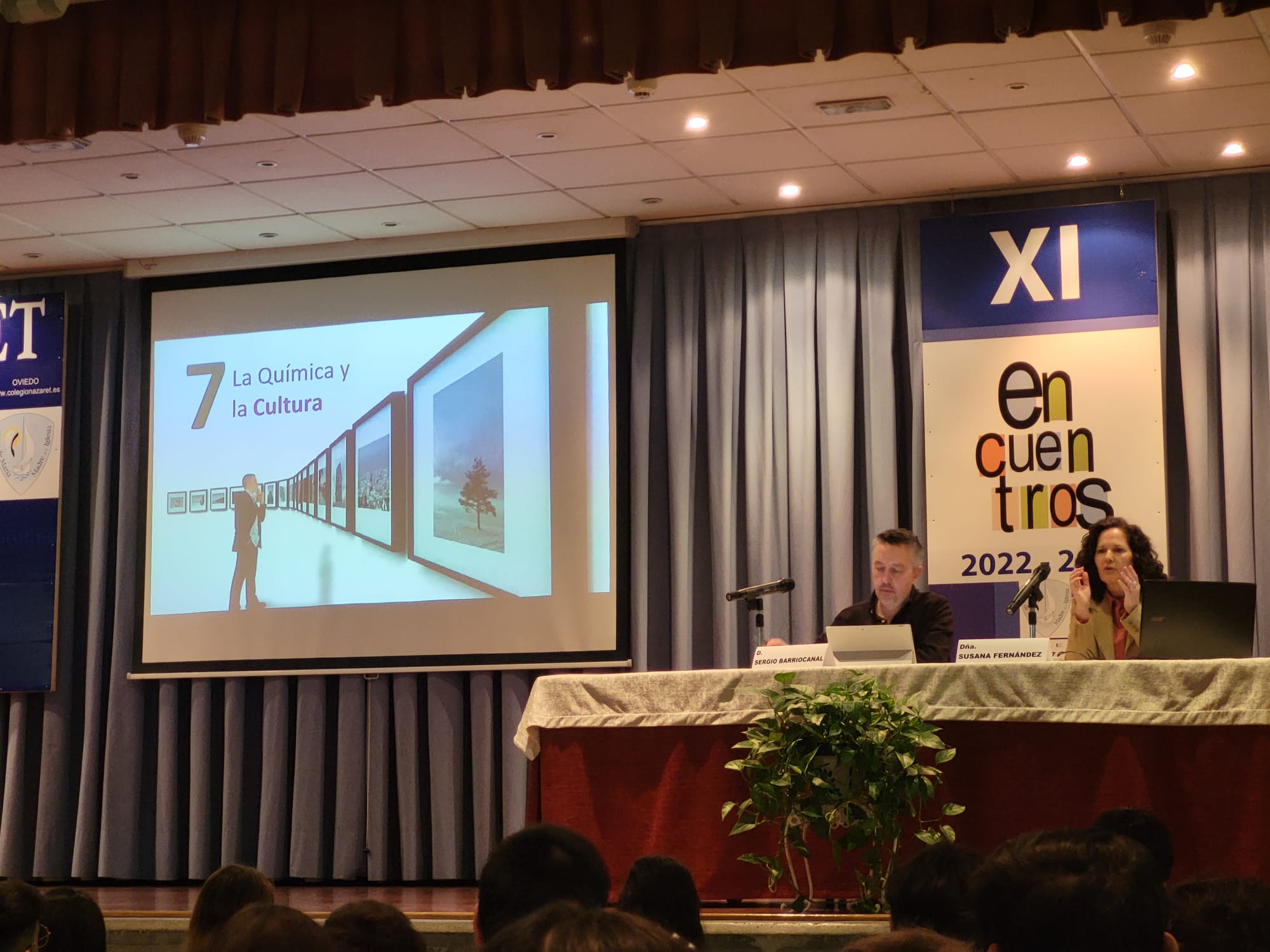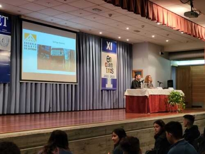 Y, el último "Encuentro" de este año corrió a cargo de Susana Fernández, decana de la facultad de Química de la Universidad de Oviedo, que ilustró a los alumnos de 2º y 4º de ESO sobre los casi infinitos usos de la Química en la sociedad actual. Empezó su charla hablando de la contribución de la Química al área de la salud: vacunas, antibióticos, alivio del dolor, además de materias quirúrgicos e, incluso, la ingeniería molecular o los órganos artificiales. Más adelante prosiguió enumerando los aportes de la Química en el terreno de la alimentación, como los fertilizantes o la conservación de alimentos. Durante el resto de la conferencia se detallaron contribuciones esenciales de esta ciencia a múltiples actividades humanas, como el deporte, el vestido, la cultura, el transporte o las nuevas tecnologías. A lo largo de toda su charla, Susana Fernández insistió en la importancia del concepto de la “Química verde” y el desarrollo sostenible, en contraposición al concepto desfasado de la química contaminante y antiecológica. Esperemos que este encuentro con la decana haya servido para despertar alguna vocación científica o, al menos, para avivar las llamas de la curiosidad por la ciencia en general y la química en particular.