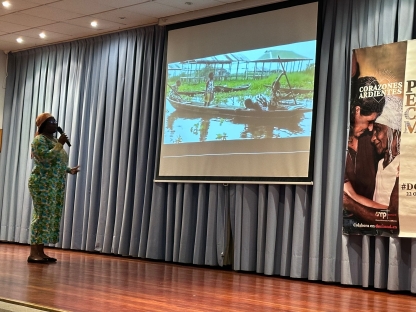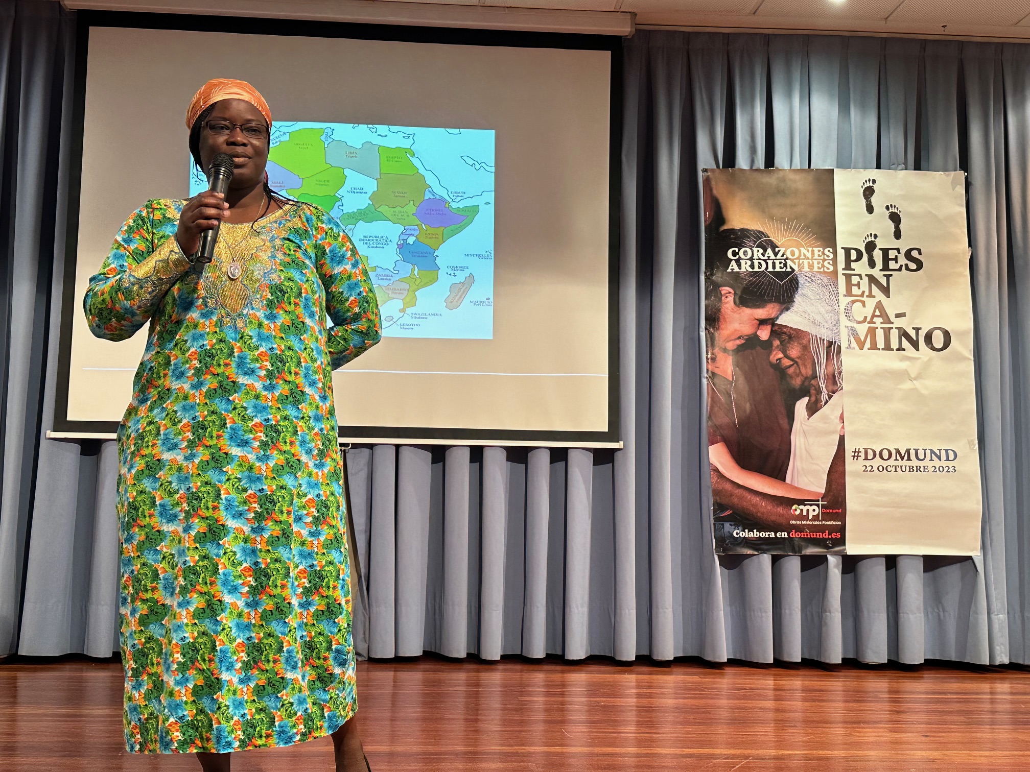 Por otra parte, también tocó un tema muy de actualidad en este mundo nuestro en guerra permanente: la convivencia de las religiones. Utilizando una preciosa foto de tres niños, cada uno de una religión diferente (musulmán, evangelista y católico), nos explicó que en su país esa convivencia es real, y se fijan en lo que les une en lugar de en lo que les diferencia: "tenemos un Dios común, aunque lo llamemos de formas diferentes".
