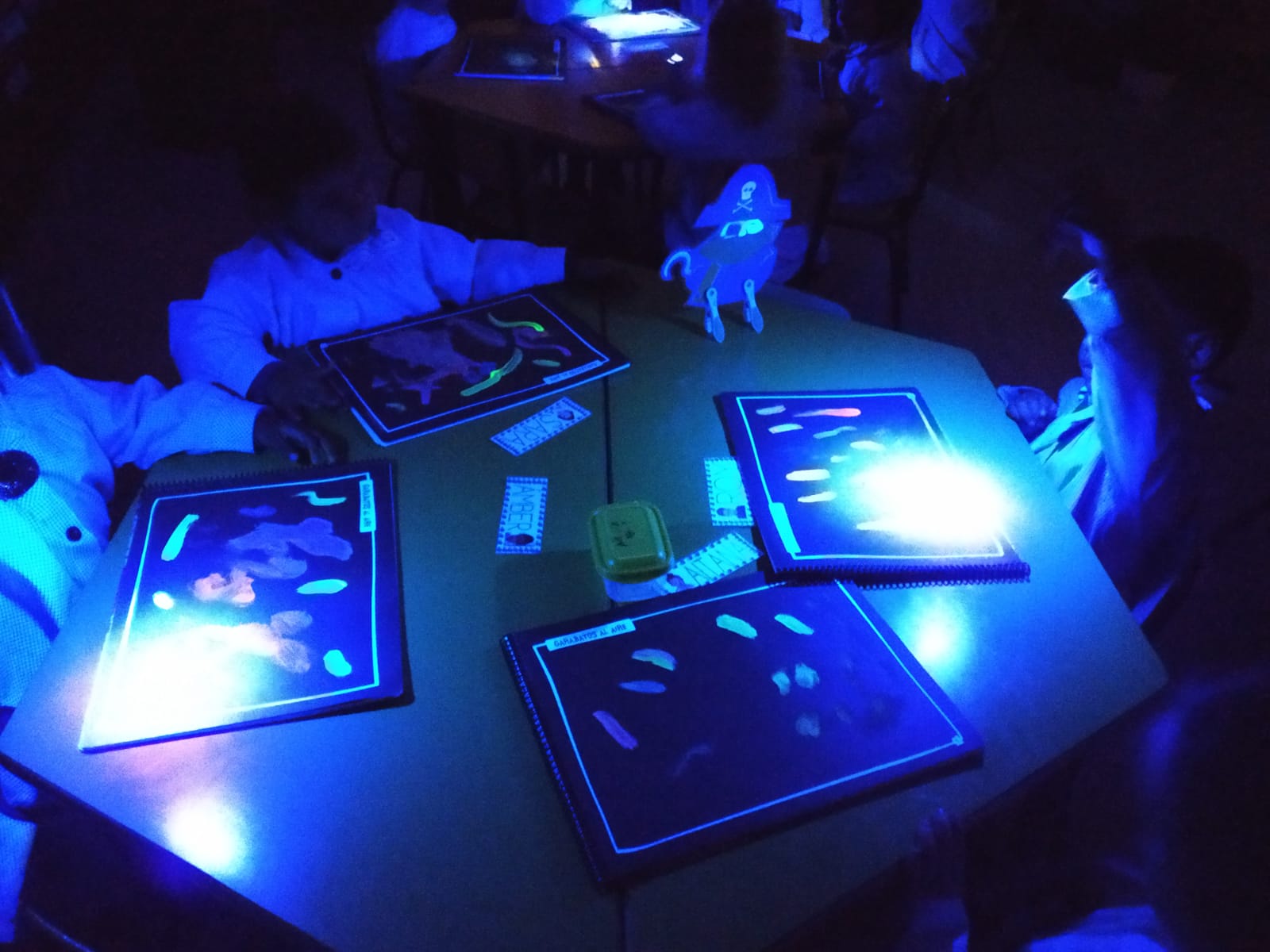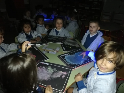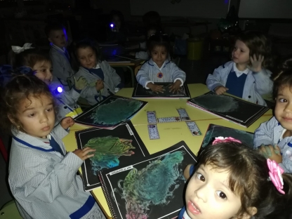 Nuestros alumnos de 3 años, de la mano de nuestras profes de Educación Infantil Carmen Rodríguez y María Cebrián, han comenzado a utilizar luz negra.