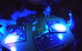 Las sesiones de luz negra son uno de los recursos educativos que más atraen a los niños. Se trata de utilizar una fuente de luz negra sobre folios o ropa blanca y pinturas fluorescentes, lo que permite experimentar de forma sensorial, ya sea haciendo sus propias creaciones artísticas, usándola para cualquier tipo de juego que ellos mismos inventen…