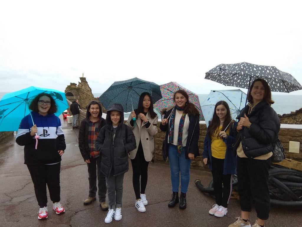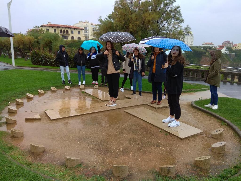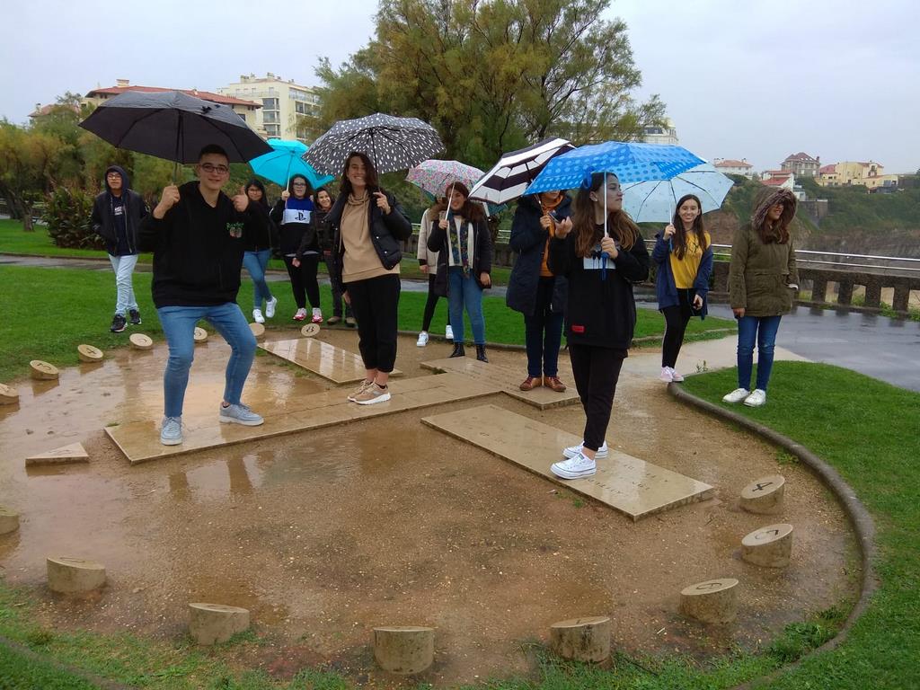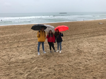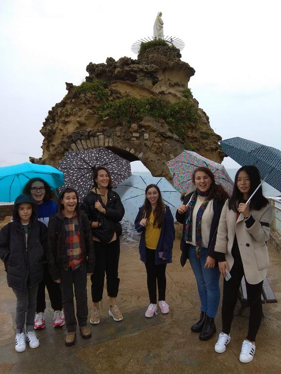Ayer conocieron la bella ciudad de Biarritz, pasearon por su hermosa playa (a pesar de la lluvia) y visitaron el famoso "Rocher de la Vierge", el faro y el reloj solar o "cadran solaire".