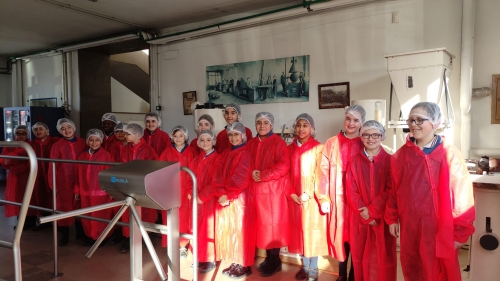 Gracias a las explicaciones de nuestra guía, y siguiendo el proceso de fabricación del chocolate desde la recolección de los granos de cacao hasta el envasado y distribución, los alumnos aprendieron la diferencia entre las distintas variedades de chocolate, por qué algunas son nutricionalmente más recomendables que otras y pudieron apreciar y valorar la cantidad de personas que forman parte del entramado industrial que permite hacer algo aparentemente tan sencillo como llevarnos a la boca un bombón o un trozo de turrón. Y al final, claro… ¡comieron chocolate!