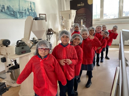 Los alumnos de segundo ciclo de Educación Primaria han disfrutado esta semana de una salida muy especial a la fábrica de Chocolates Lacasa. Durante la misma, han descubierto el asombroso proceso de producción de distintos tipos de chocolates desde su origen, además de la historia y muchas curiosidades sobre La Casa. Les han tratado y genial y, para despedirse, les obsequiaron con algunas de sus delicias.