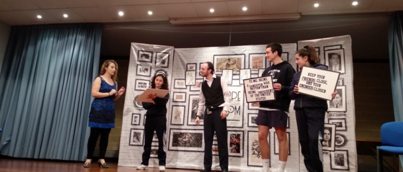 Los alumnos de ESO y sus compañeros del colegio Nuestra Señora de Covadonga, de Noreña, pudieron disfrutar ayer miércoles, 11 de marzo, de la obra de teatro en inglés Escape Room, en el salón de actos. Se trata de una obra interpretada por la compañía Forum, ambientada en los años 20, completamente interactiva, en la cual el papel de los alumnos fue fundamental, ya que gracias a sus habilidades y talentos contribuyeron exitosamente a que los personajes consiguieran su objetivo: escapar de la habitación en la que se encontraban atrapados.