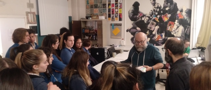 La visita que los alumnos de 4º ESO B realizaron el pasado viernes a la Escuela de Arte de Oviedo fue lo más parecido a una inmersión subacuática. Solo la entrada recuerda al mundo terrestre y prosaico. Enseguida, guiados por Juan Luis, cruzamos ya la primera escotilla para llegar al aula donde Agustín, profesor del ciclo formativo de escultura aplicada al espectáculo, nos recibió levantando un plástico que ocultaba una reproducción de un tiburón de Groenlandia realizado a tamaño real con fluorespán.