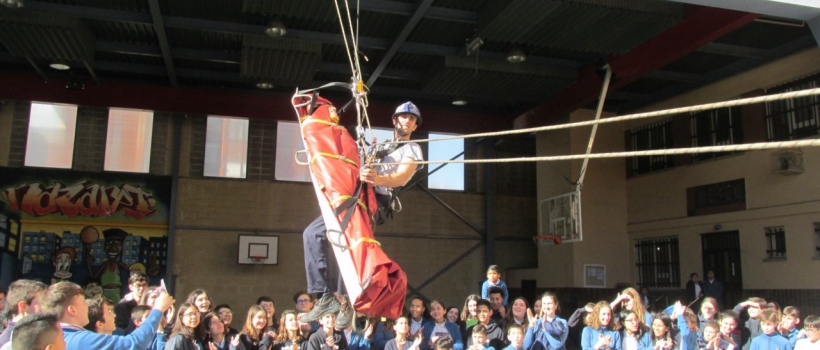 La cuarta jornada de los X Encuentros contó con la sabiduría del catedrático don Francisco Argüeso, que nos habló del universo, con la impresionante presencia de la Brigada Central de Salvamento Minero, que hizo una demostración en el patio con su camión y todo su equipo, y con un cuentacuentos para los más peques del cole, a cargo de doña Nuria Díaz. ¡No se puede pedir más!