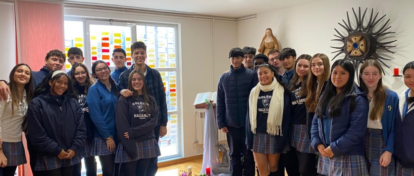Con motivo del Adviento, tiempo de luz y esperanza, la comunidad religiosa de nuestro colegio ha compartido una pequeña oración con los alumnos de 4º de ESO en su oratorio. Los alumnos también tuvieron la oportunidad de dialogar con las religiosas conociendo mejor cómo ofrecen su vida a Dios, al cuidado de los que las rodean y a toda nuestra comunidad educativa. A continuación, tuvieron un encuentro distendido, disfrutando de un aperitivo sorpresa que las hermanas tenían preparado para todos. Sin duda, fue un encuentro cariñoso y emocionante que sirvió para preparar con alegría la próxima Navidad que se acerca…
